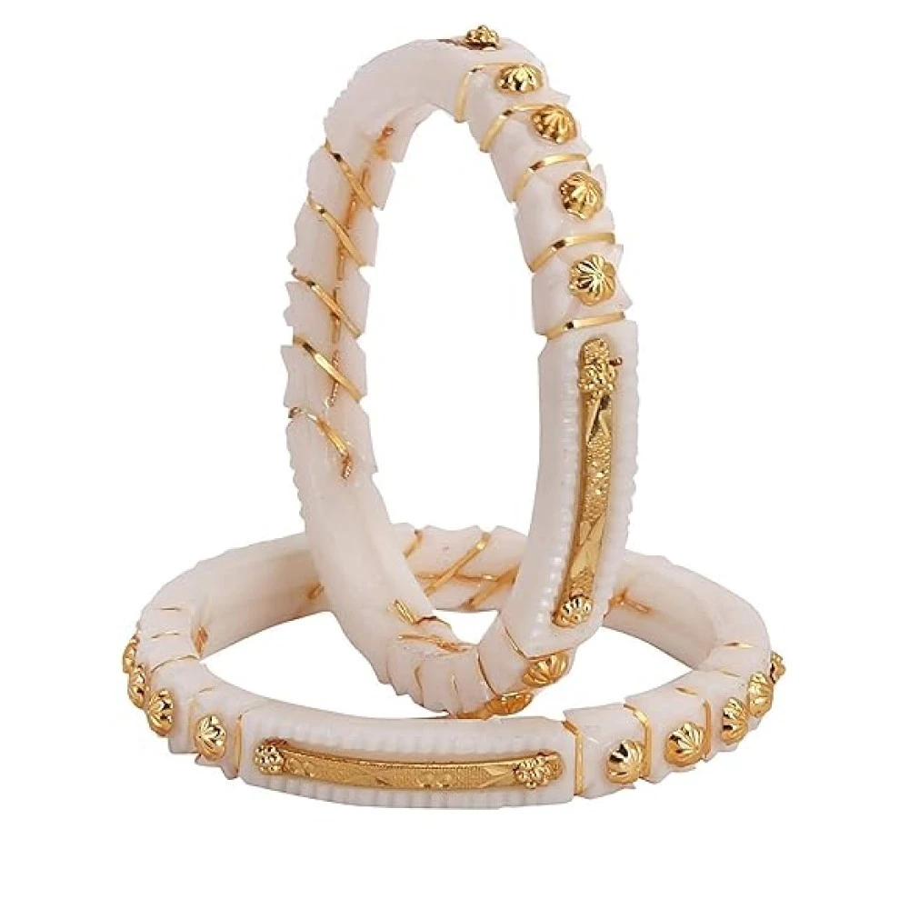 Each bangle in this set is meticulously gold plated to achieve a radiant and luxurious appearance, reminiscent of authentic gold jewelry. Whether you're attending a wedding, celebrating festivals, or participating in traditional ceremonies, these bangles are the perfect choice to complete your ensemble.
