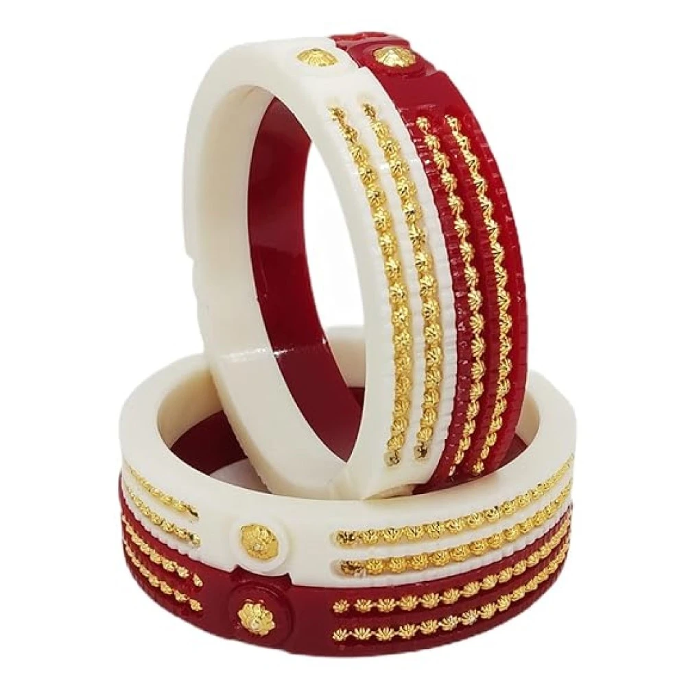 Tanvi J Plastic Gold Plated Double Line Shakha Pola Bangle Set for Women Set of 4