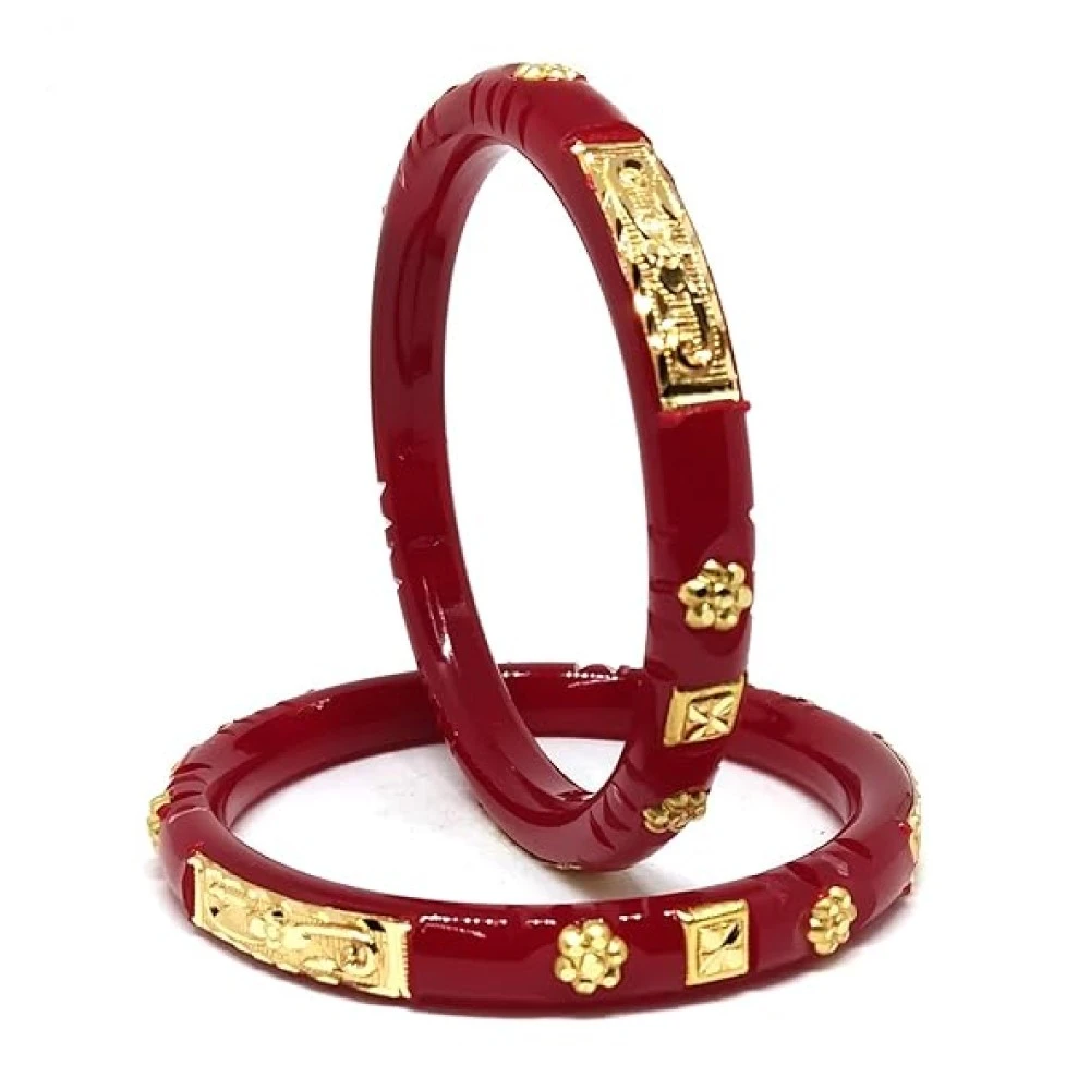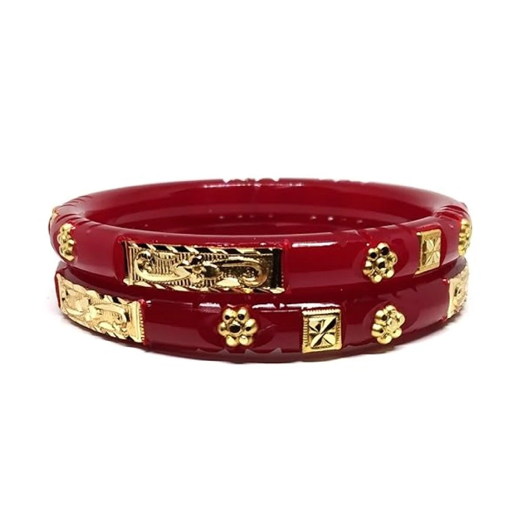 This traditional set exudes timeless charm with its intricate detailing and antique finishing touches, making it a perfect symbol of marital tradition. Whether adorning your wrists for weddings, festivals, or casual outings, these bangles elevate your style with grace and poise.