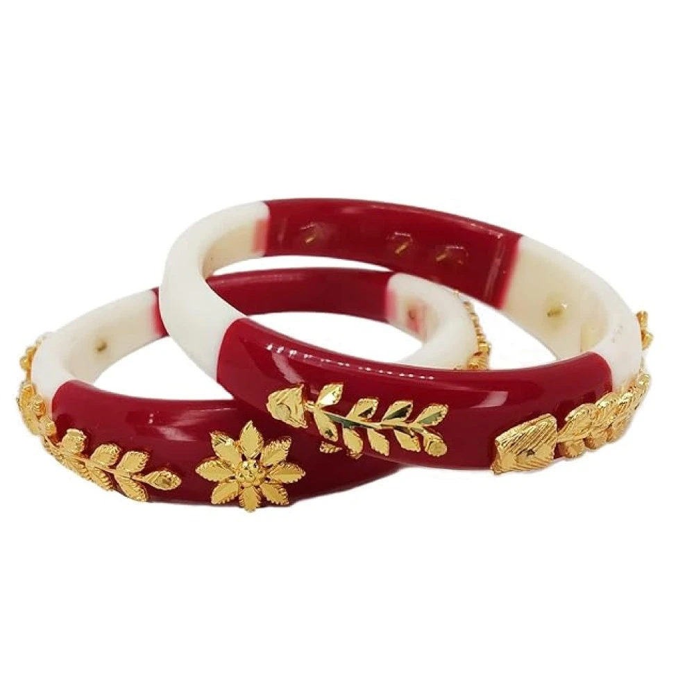 Tanvi J Plastic Gold Plated Red and White Bracelet Pola Bangle Set for Women