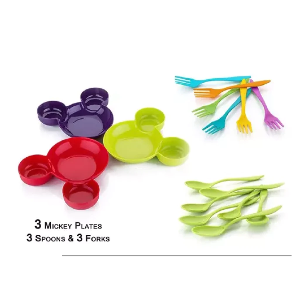 Name : 3 Pcs Mickey Plate, 3pcs Spoon & Fork (Multicolour)