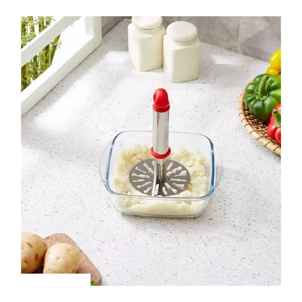 The stainless steel vegetable masher is a robust and versatile tool for mashing a variety of vegetables. Crafted from high-quality stainless steel, it ensures durability and is suitable for multipurpose use in the kitchen.