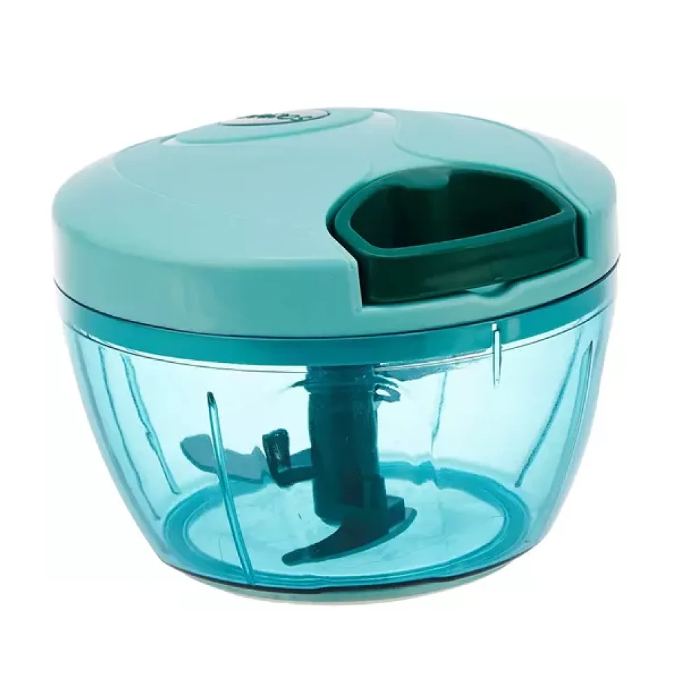 The manual green chopper is constructed with a durable stainless steel body and features sharp plastic blades. Ideal for multipurpose use, it facilitates quick and efficient chopping of various ingredients. Its compact design makes it a handy tool in any kitchen.