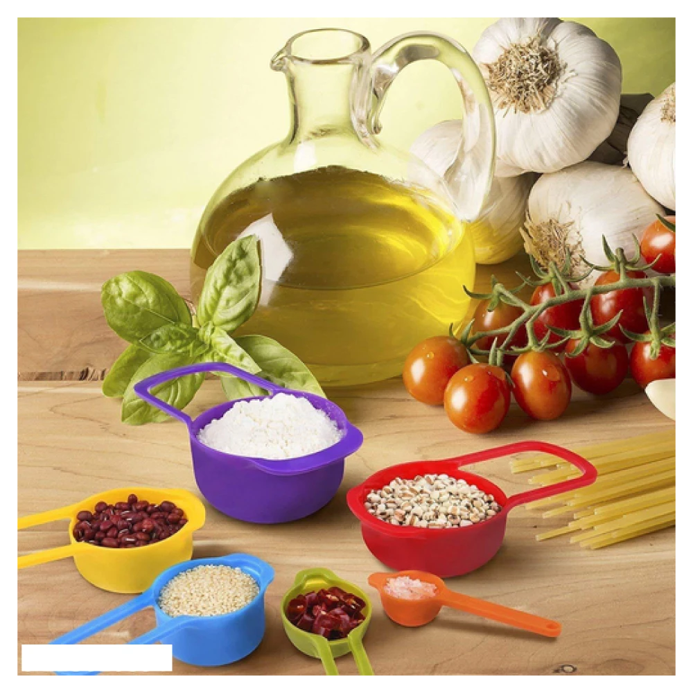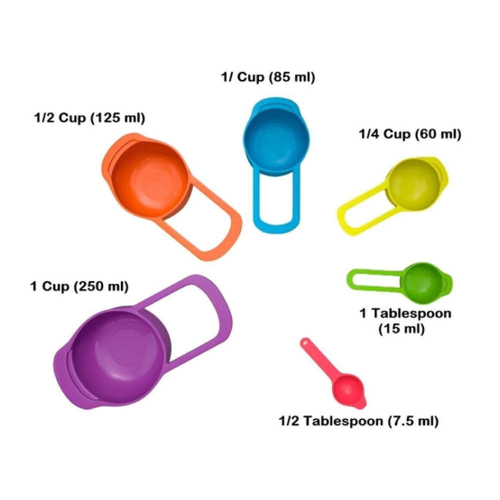 Name : Plastic Multi-Purpose Measuring Spoon and Cup Set, 6-Pieces (Multicolour, Pack of 1)