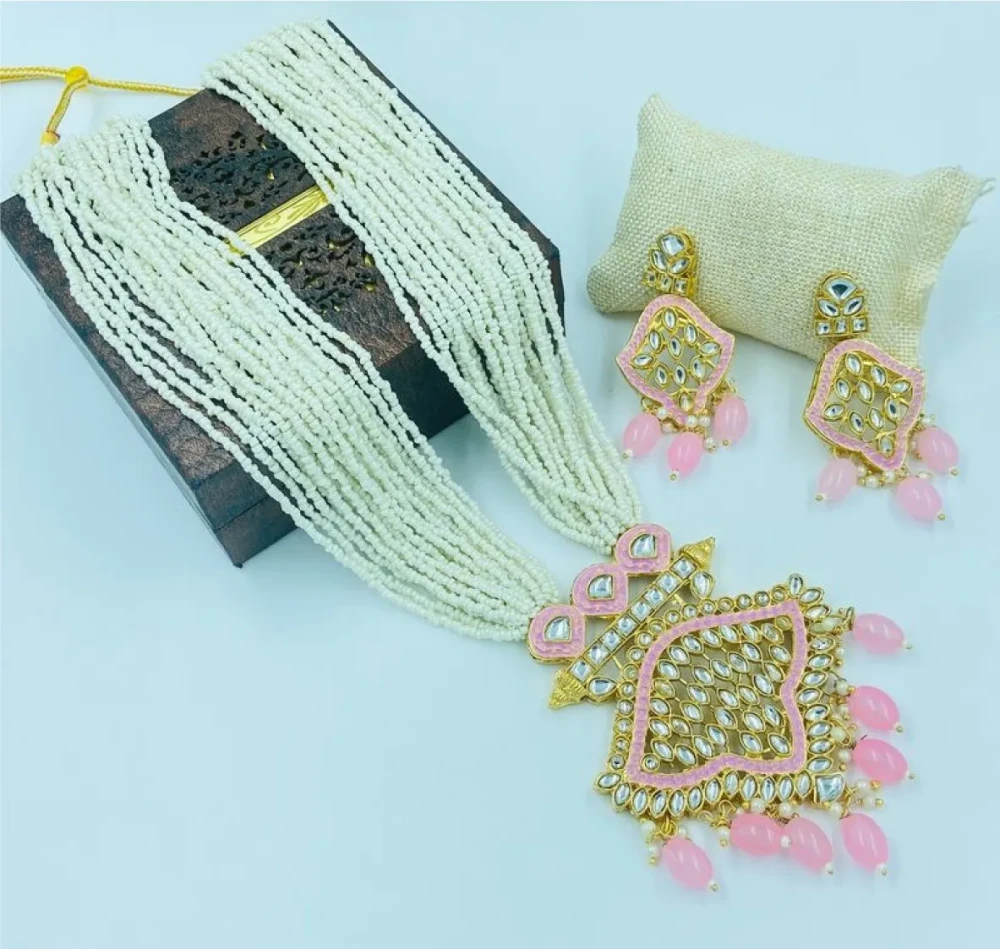 Tag: sets women earrings women jewellery necklace pink girls pearl necklace set kundan