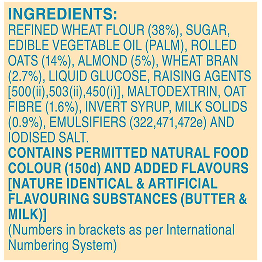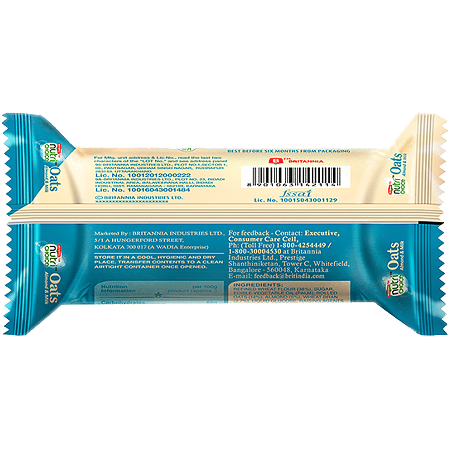 Britannia NutriChoice Oats Milk Almond Cookies are a delicious healthy snack that is a combination of rolled oats, wheat bran, crunchy almonds and goodness of milk. These high fibre Oats and almond biscuits are perfect for whenever you want to snack on healthy biscuits. They are also yummy Milk cookies when you want to snack on something tasty. Go ahead and make a good choice.