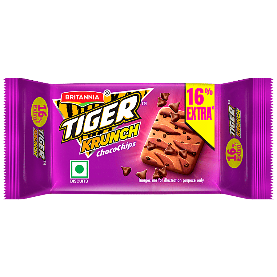 Britannia Tiger Krunch Chocochips Biscuit, Crunchy, Ready To Eat, 27 G (Get 16% Extra)