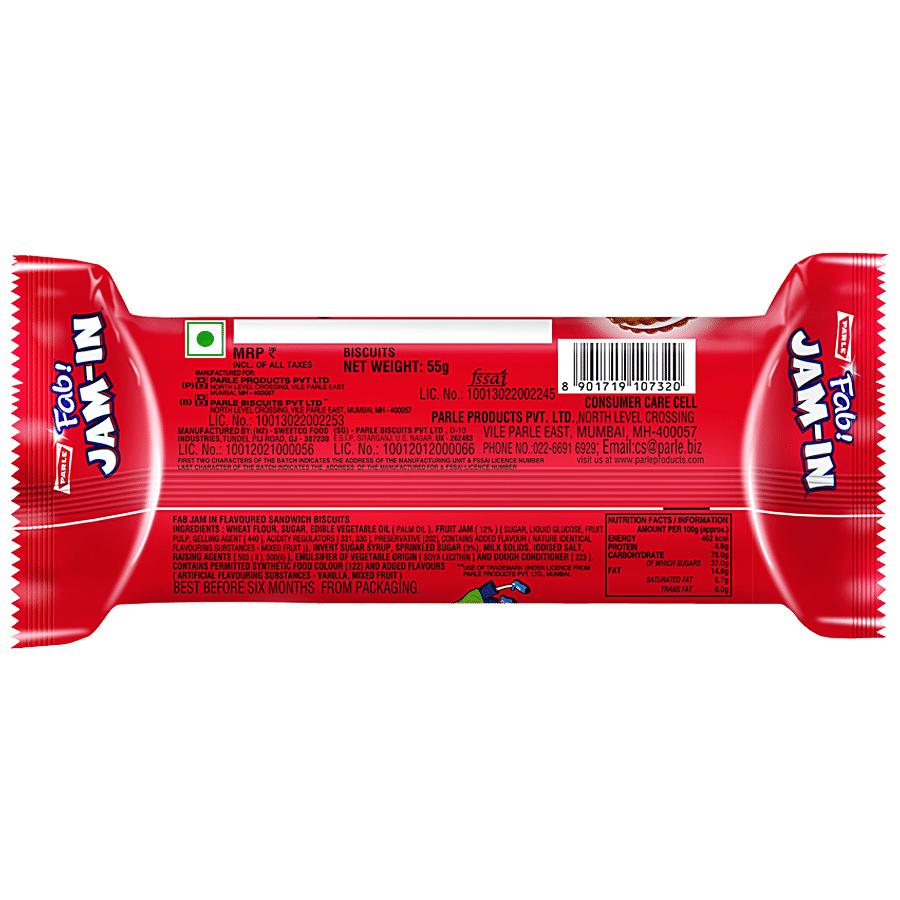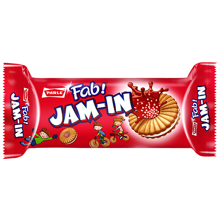 Parle Jam In is a fruit-flavoured cream sandwich biscuit with real fruit jam. Relish the tasty fusion of biscuit and cream with a sugar topping. With every bite, experience a party of flavours in your mouth as the delicious cream melts along with the lingering taste of jam. All this bundled up with crispy biscuits on both sides. Parle Jam-in is a heavenly blend and a sumptuous delicacy for everyone.