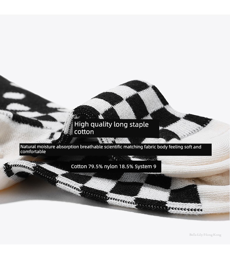 Bellalily Early Spring New Arrivals Color Matching Plaid Cotton Socks for Women Comfortable Breathable Mid-Calf Socks Japanese Style Casual Socks -Black