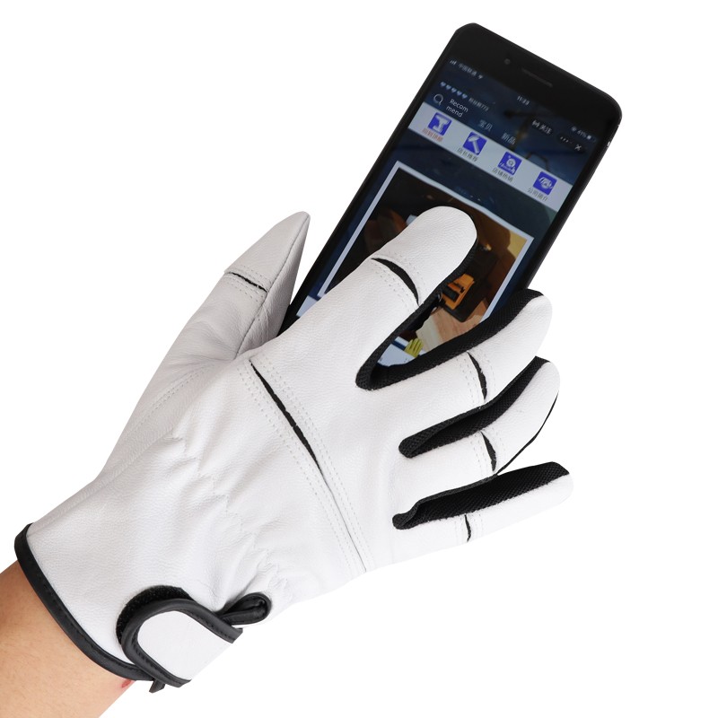 Cycling Gloves Touch Screen Genuine Sheep Skin Outdoor Sports Self-Motorcycle Electric Vehicle Express Delivery Cold Protection in Winter Fleece-lined -White with black edges