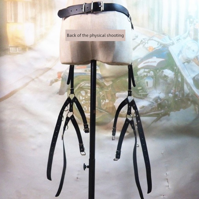 Dark Goth Hip-Hop Performance Fashion Belt Binding -Square Buckle Belt Leg Loop