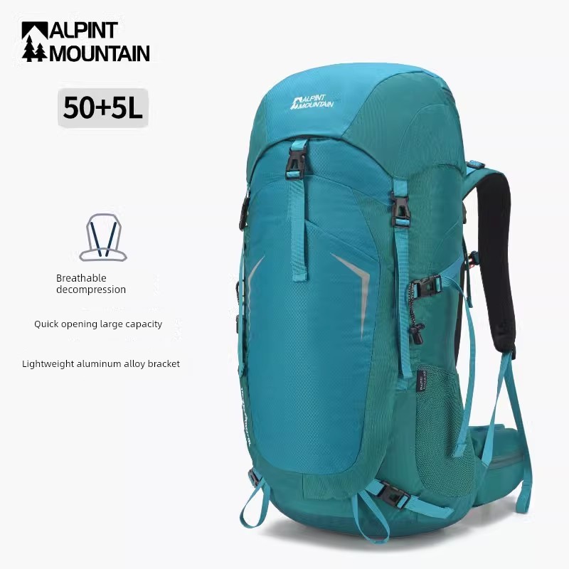 Elmont Professional Men 50 Liters Abrasion Resistant Hiking Backpack -Lake green 55L distributed load reduction (rain cover)