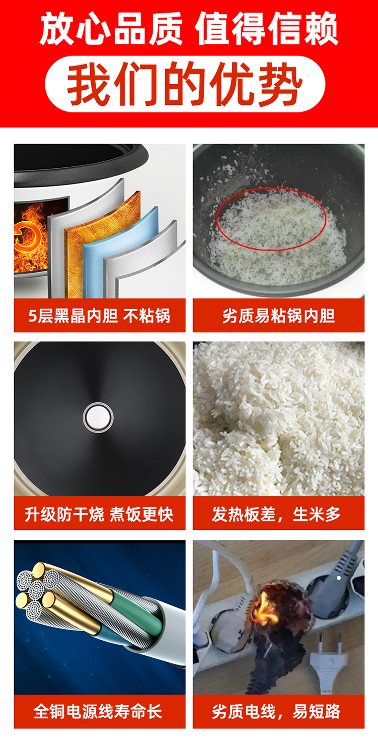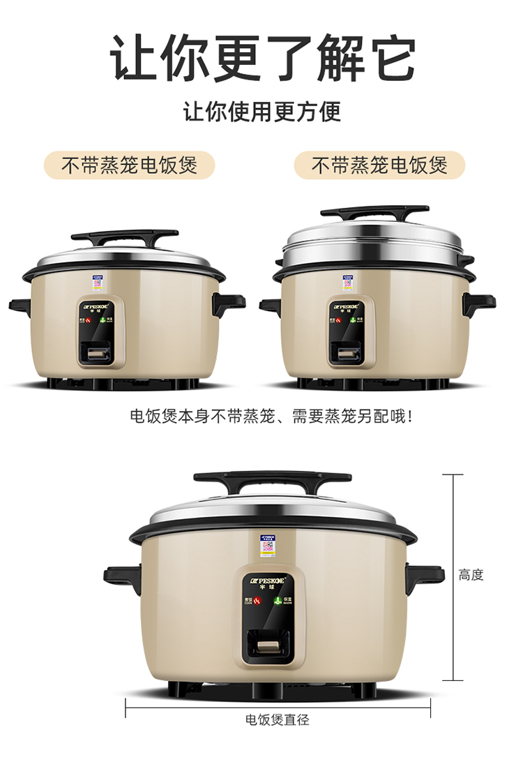 Hemisphere Brand Rice Cooker Commercial Large Capacity 10 Liters 15-20-30 People Cafeteria Restaurant Old-Fashioned Extra Large Rice Cooker -Champagne gold 5L extra thick non-stick pan 4-7 people