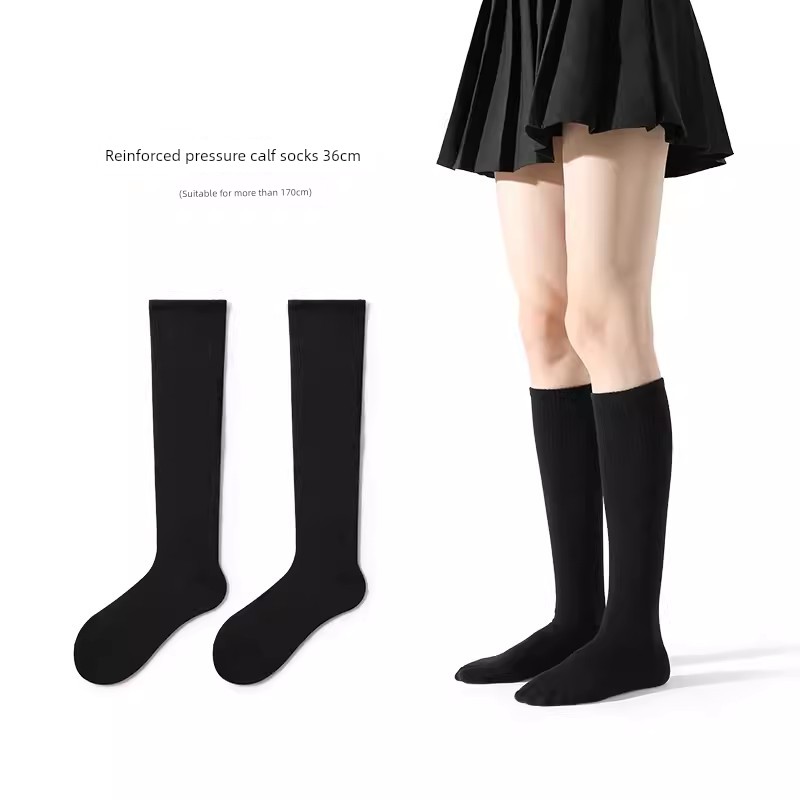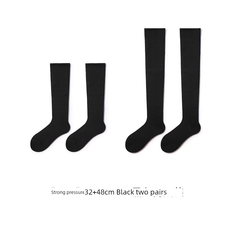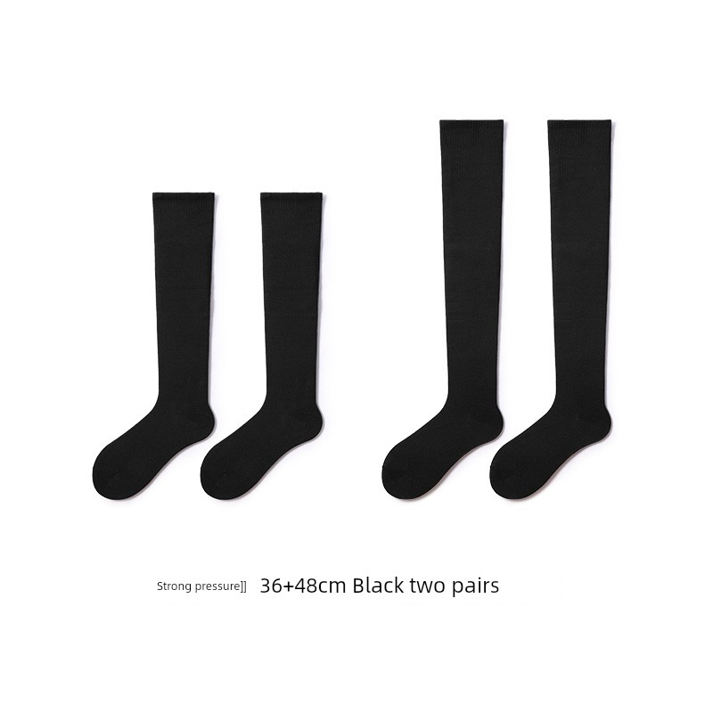 JK Sports Women over the Knee Micro Pressure Spring & Fall Black Calf Socks -"Strong pressure" 48cm Black two pairs