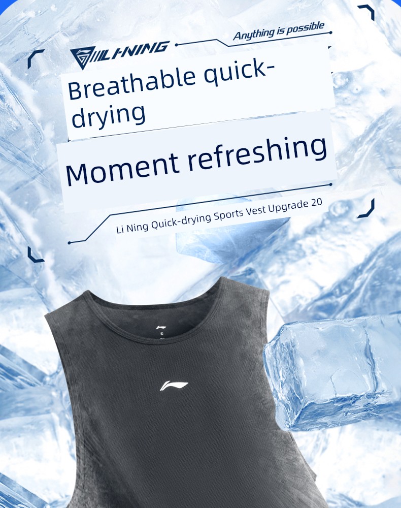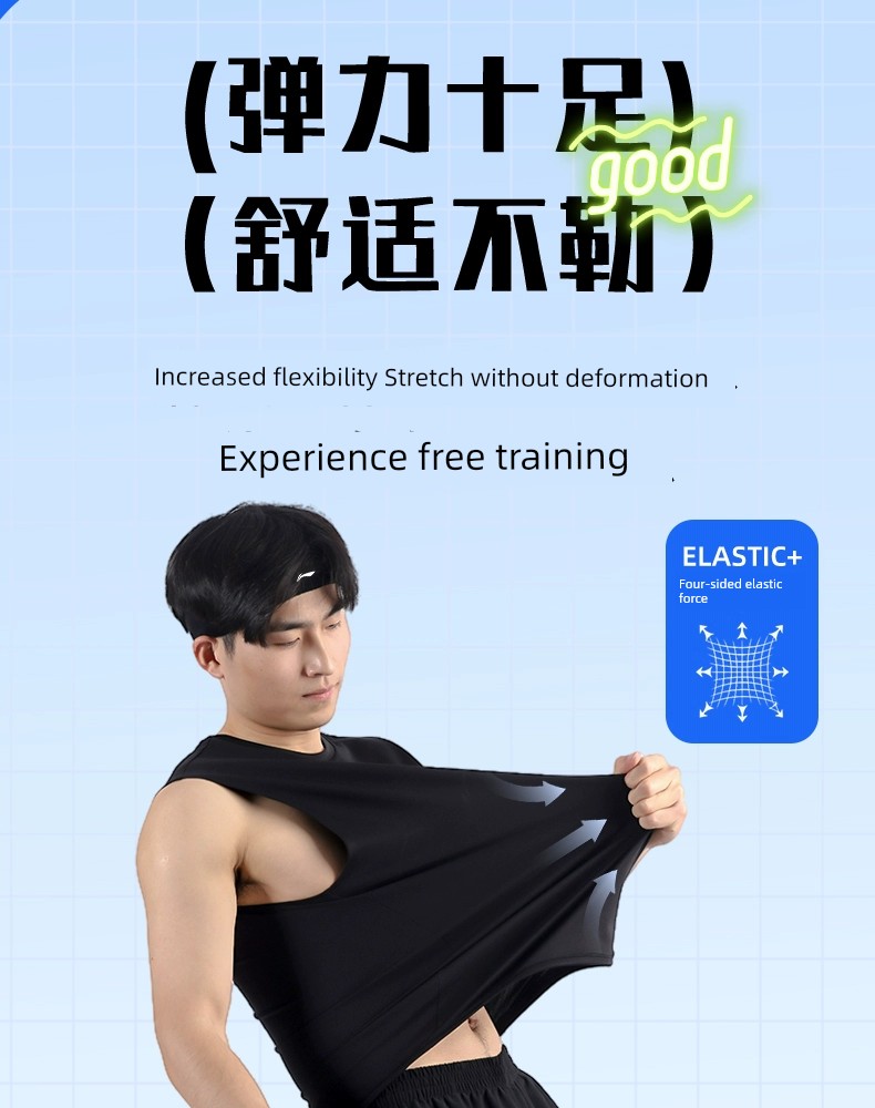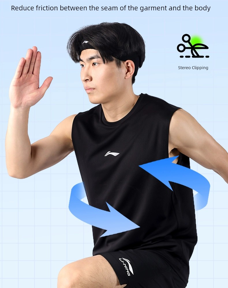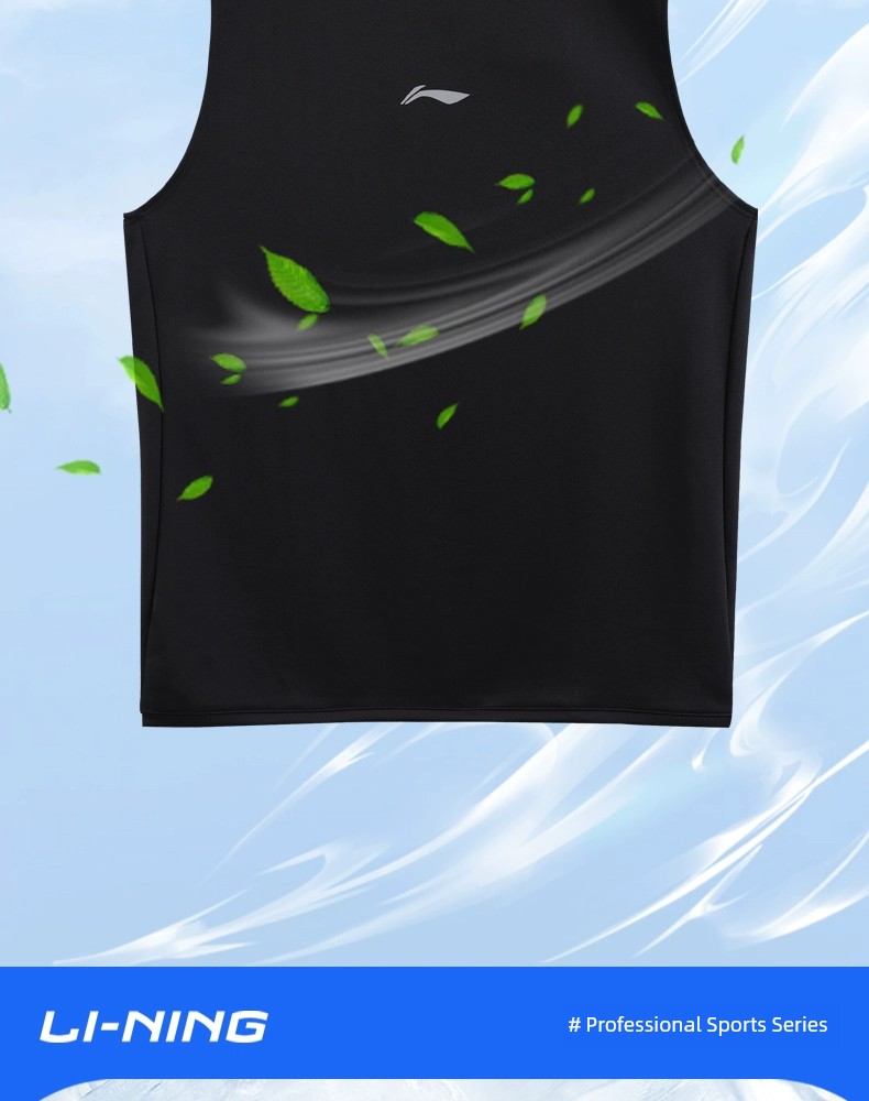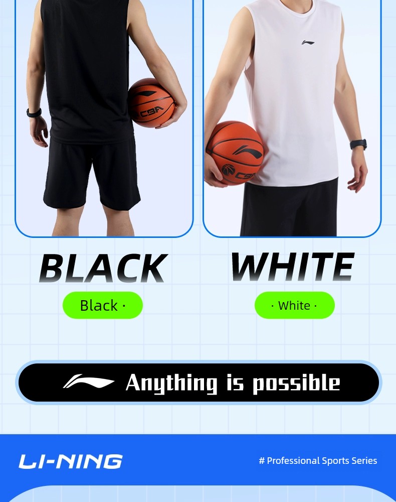 Li Ning Men's Sleeveless Ice Silk Basketball Sports Vest -[Quick-dry breathable Plaid 25 New arrival] Pure Black