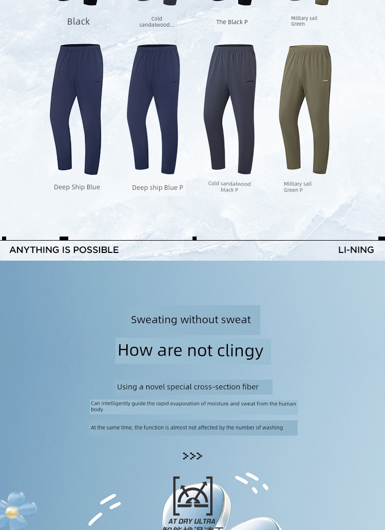 Li Ning Men Fitness Loose Straight-leg Sports Pants -Deep ship Blue P