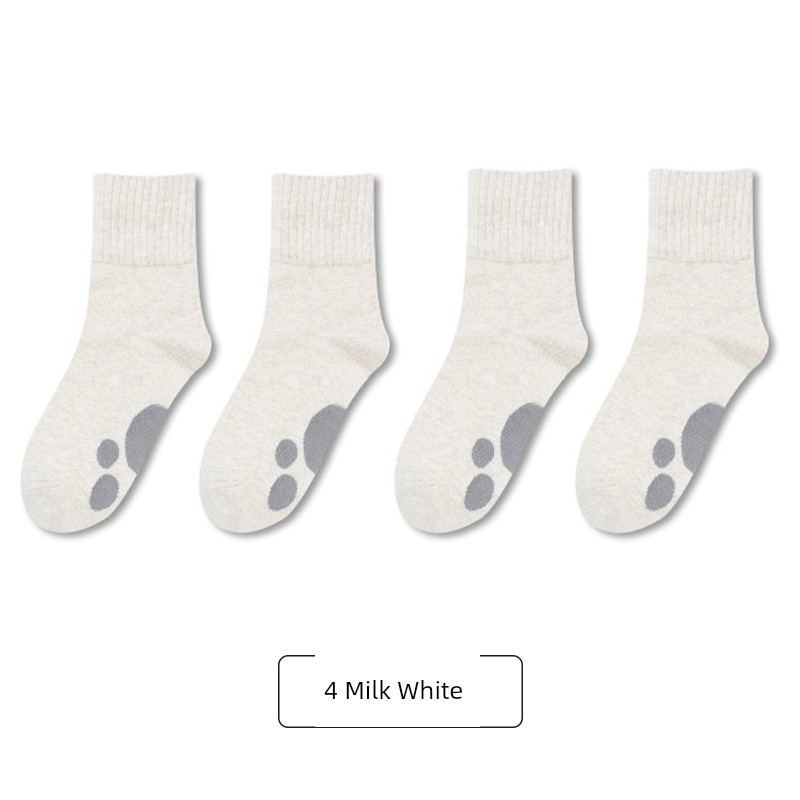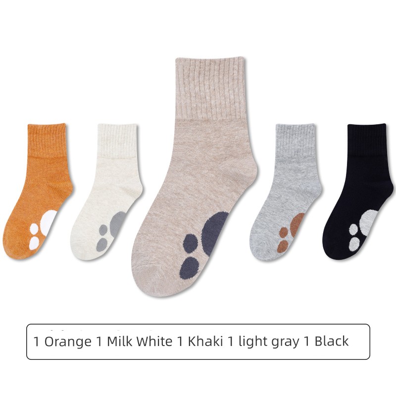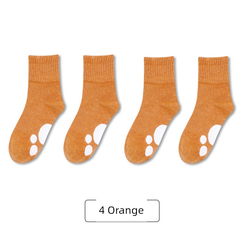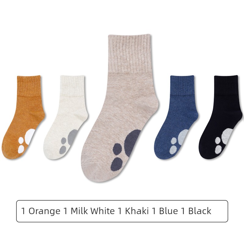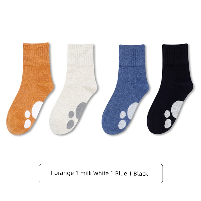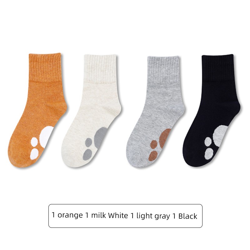 Long Cotton Thickened Warm Keeping Girls Socks -1 orange 1 milk White 1 khachi 1 Black