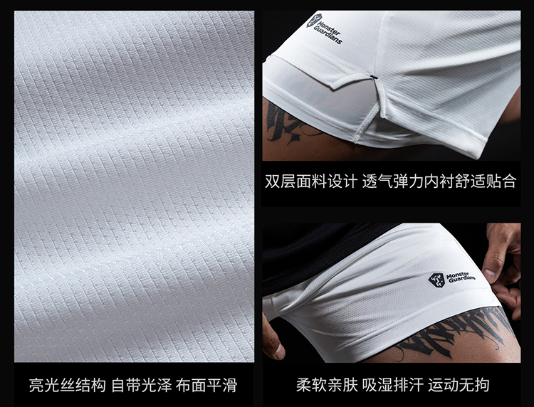 Monster Guardians Men's Double-Layer Professional Workout Shorts Moisture Absorption Breathable Running Training Pants -Size details to consult customer service