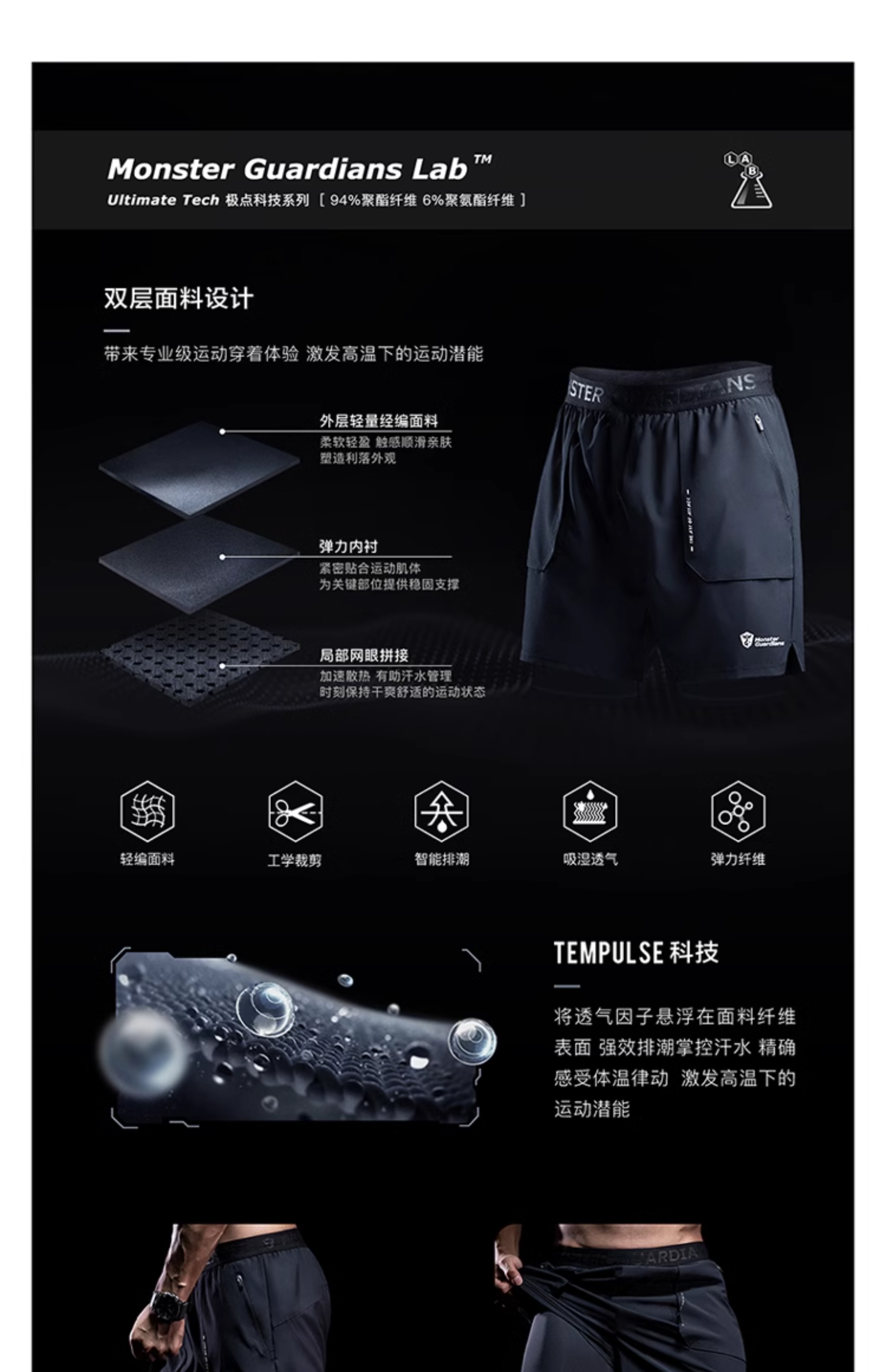 Monster Guardians Workout Shorts -Resolute Black