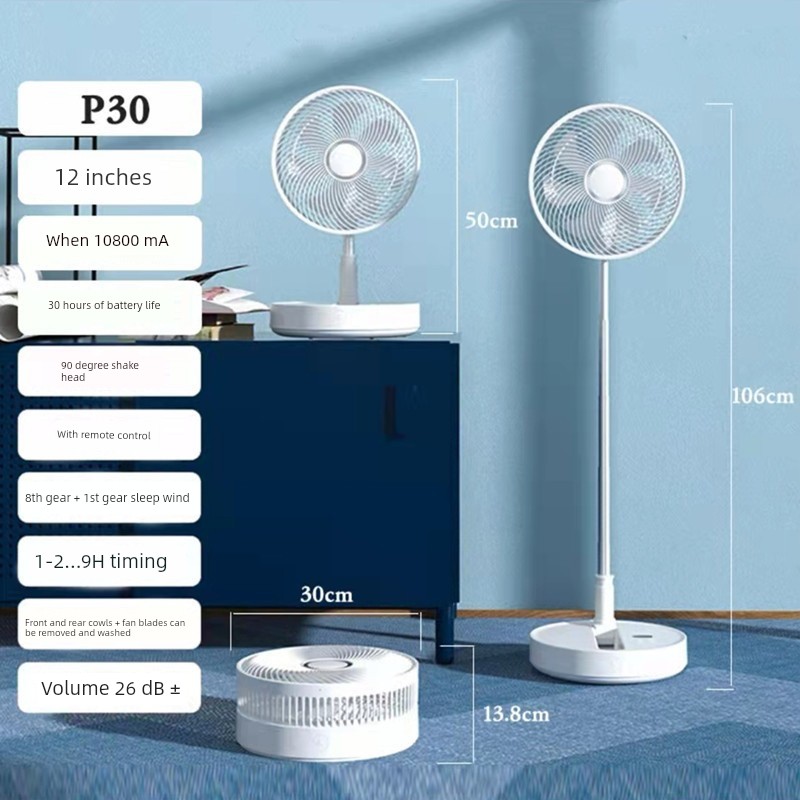 New Arrival Foldable Large Fan Retractable Foldable Storage Wireless Shaking Head Remote Control Floor Fan Student Desktop Household Portable -8 Basics Foldable Fan -4 Bladed