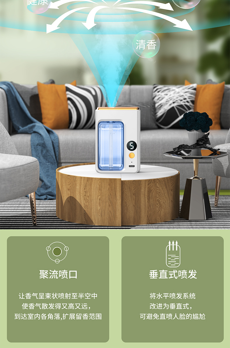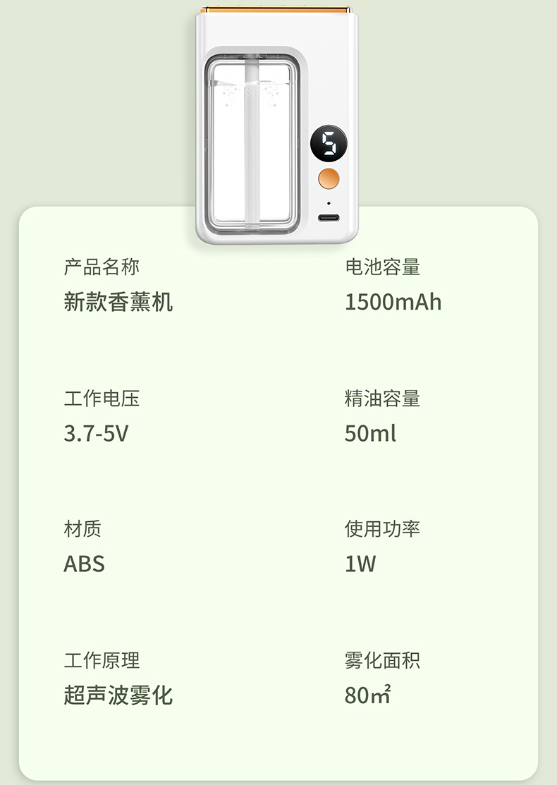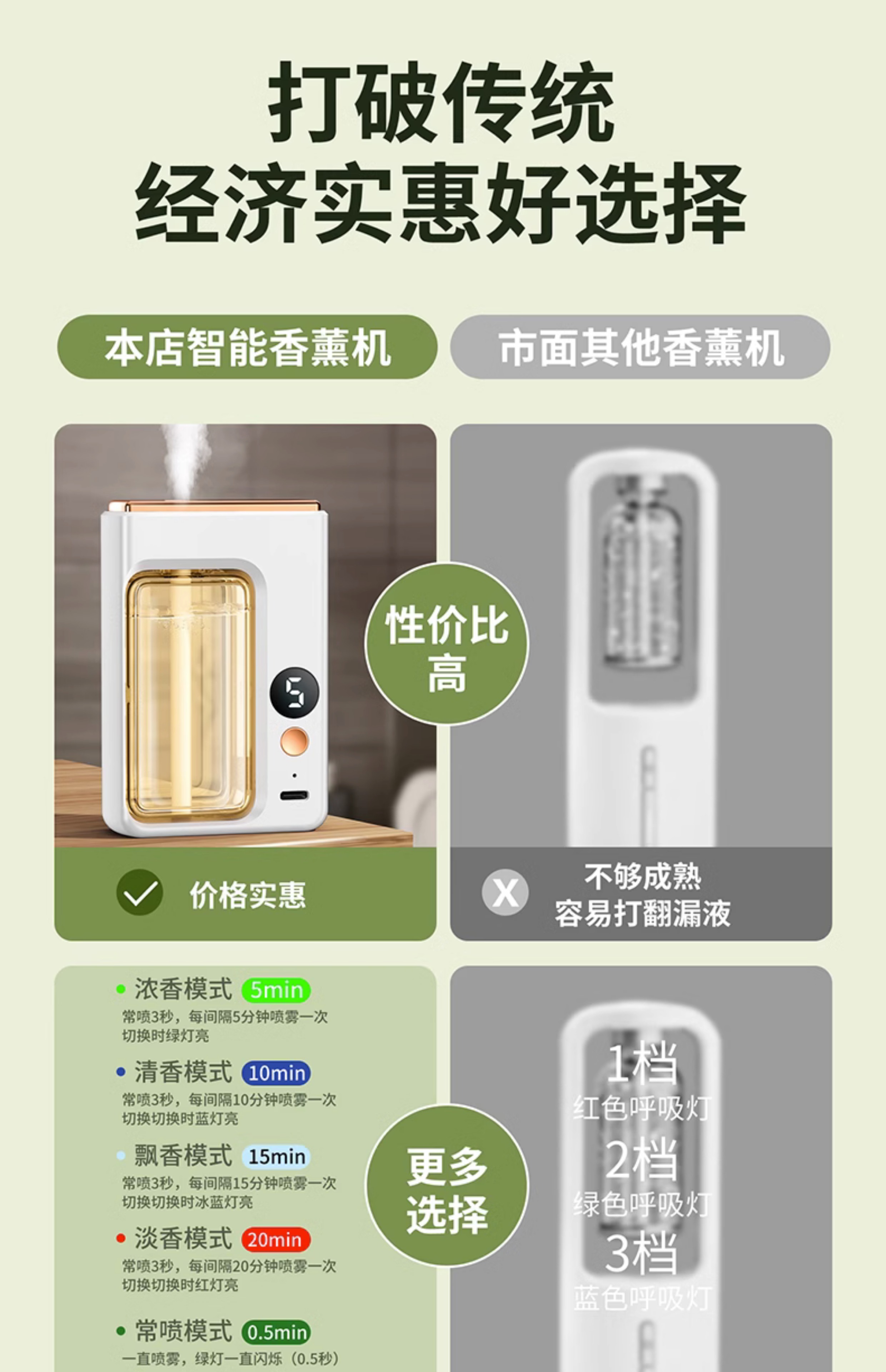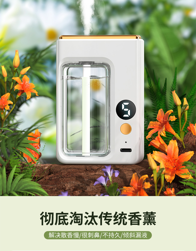 New Arrival TYPE-C Fast Charge Wireless Automatic Aerosol Dispenser Digital Display Five-Speed Timing Spray Test Bedroom Living Room Aromatherapy -PW20Pro host + aromatherapy liquid [Jasmine] 1 bottle