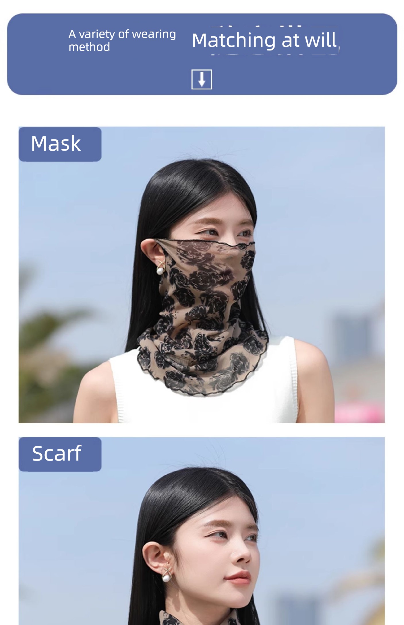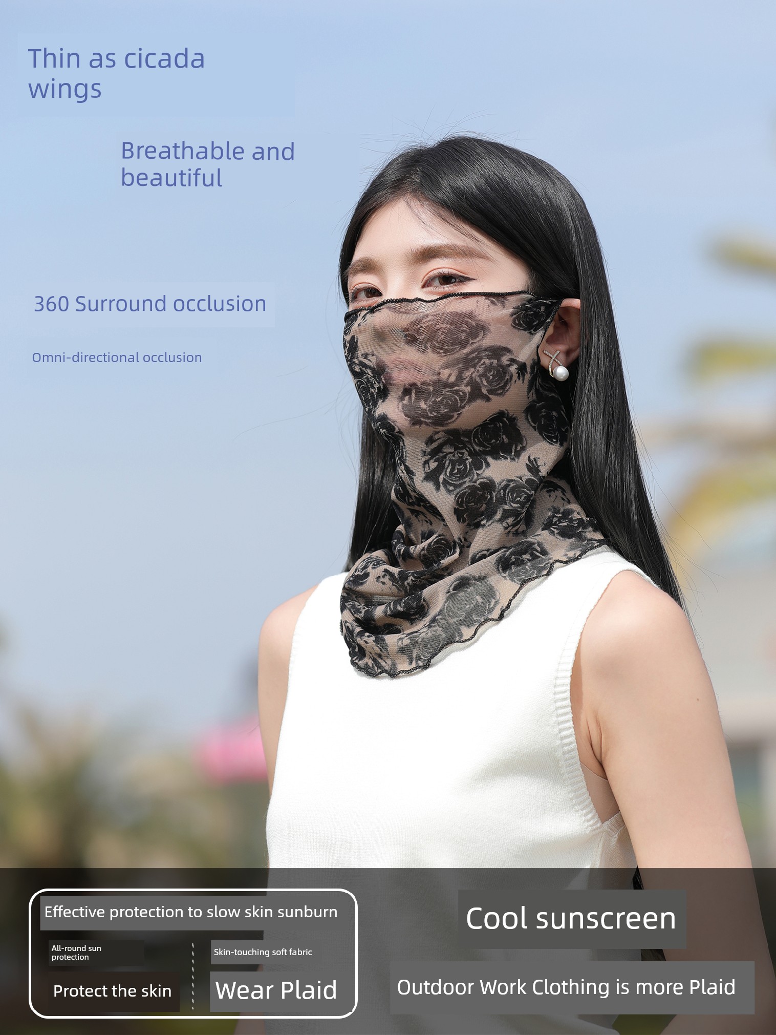 New Sunscreen Veil Summer Women Thin Ice Silk Mask Scarf Face Bandana