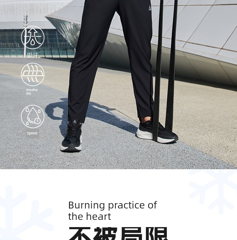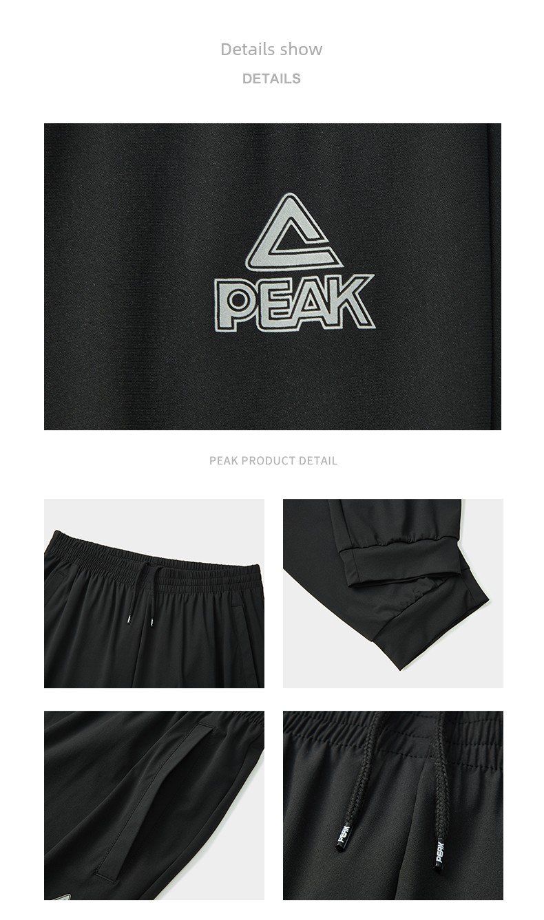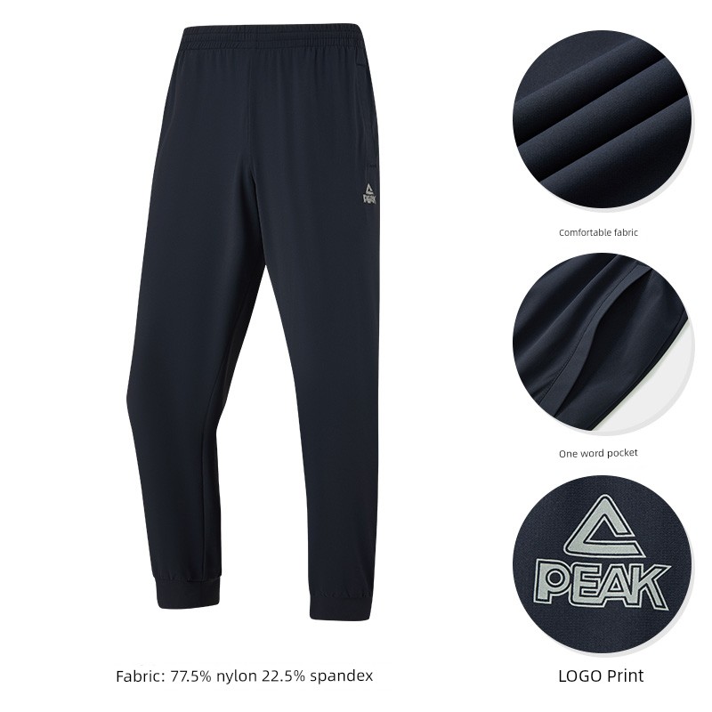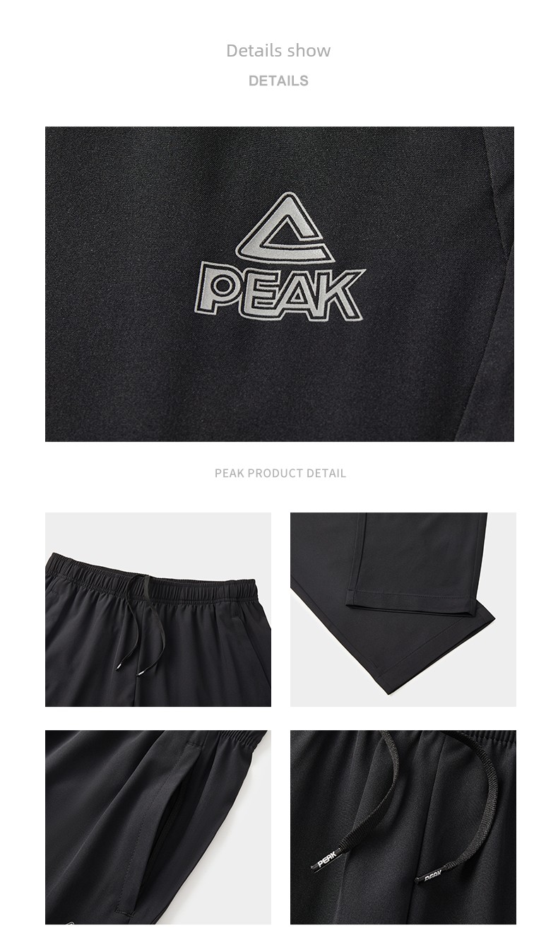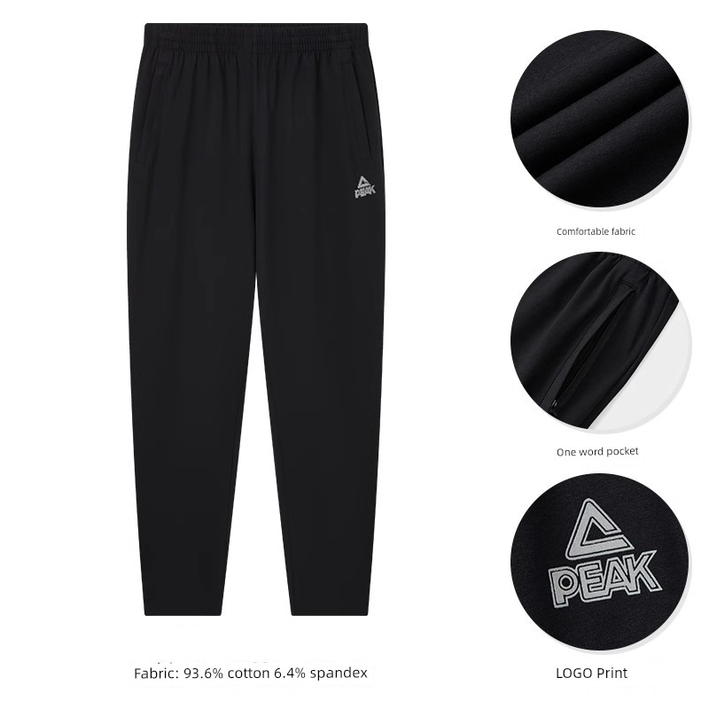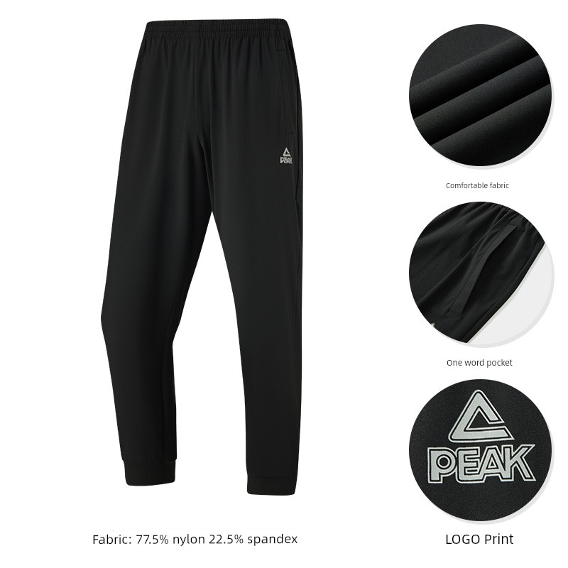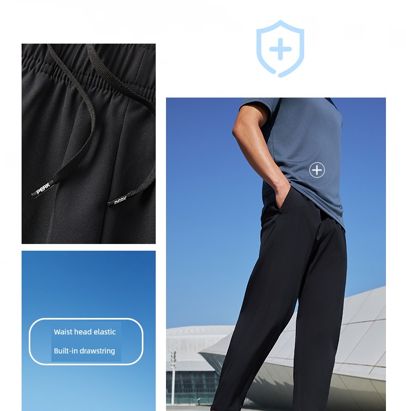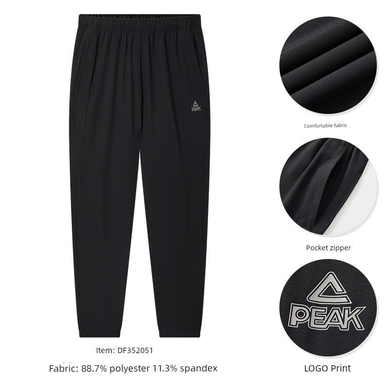 Peak Men Woven Breathable Ice Silk Straight-leg Quick-Dry Pants -Black [Quick Dry Woven Zipper]]