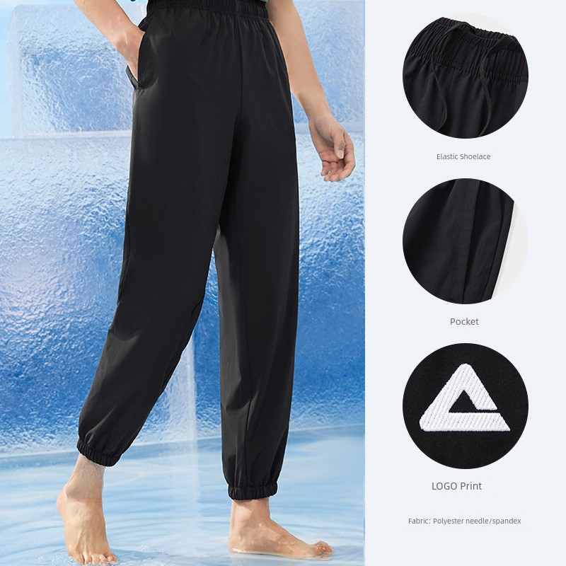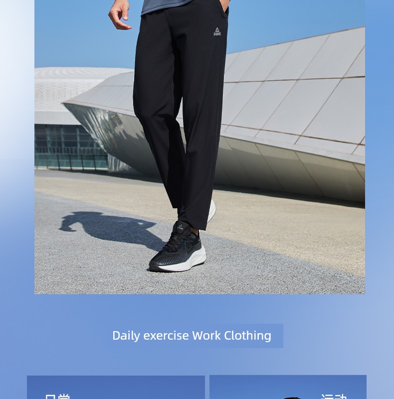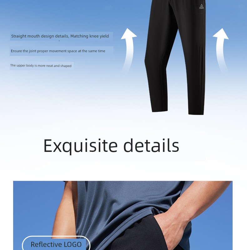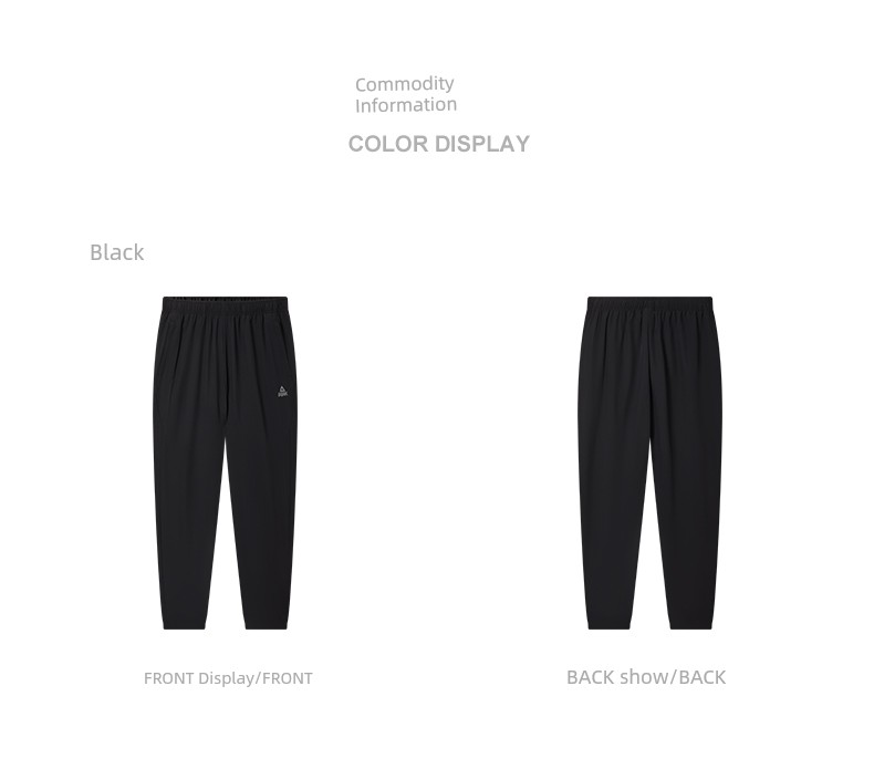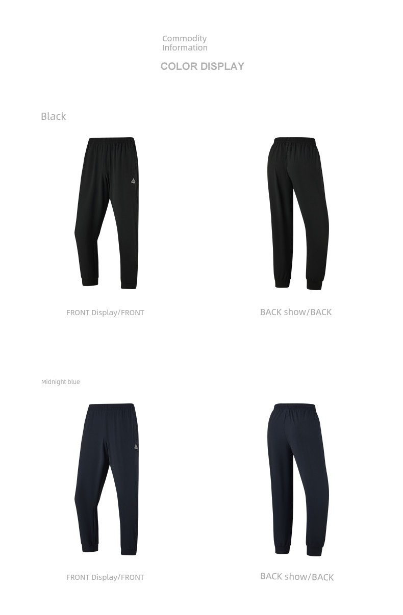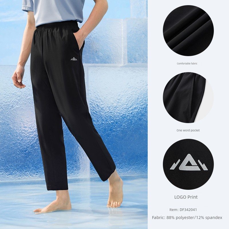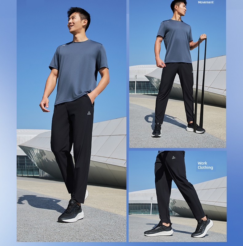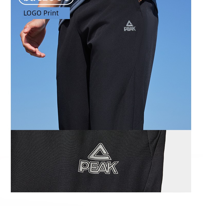 Peak Men Woven Breathable Ice Silk Straight-leg Quick-Dry Pants -Black [Quick Dry Woven Zipper]]