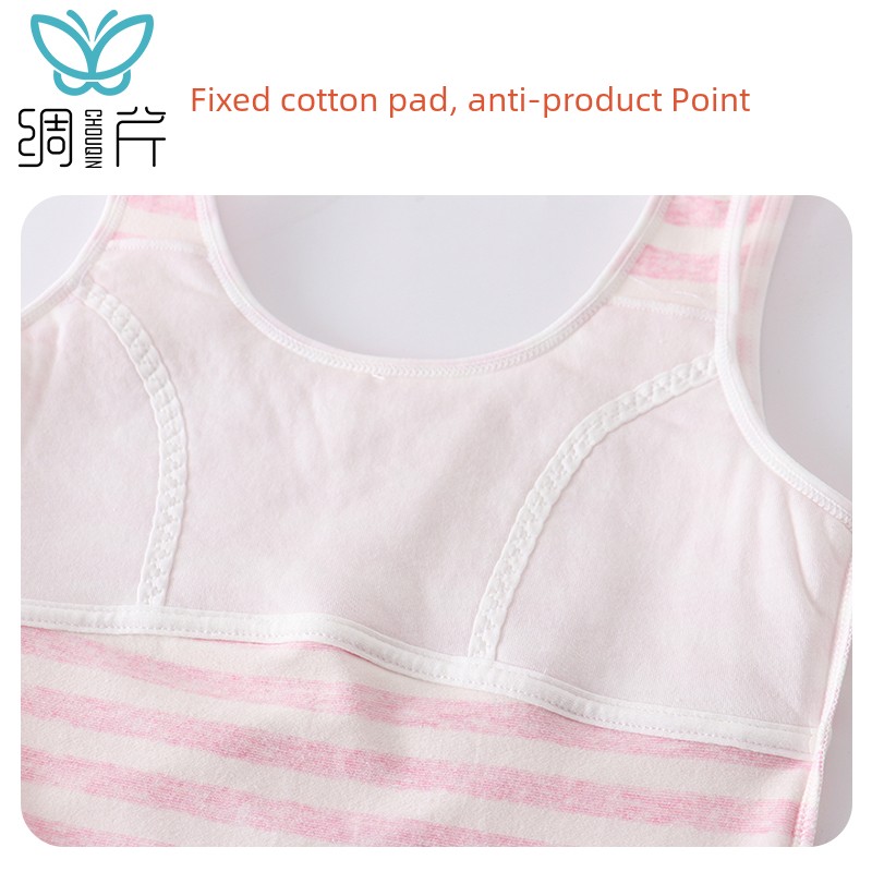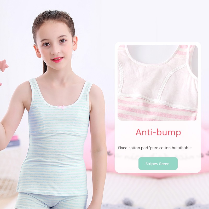 Puberty Young Girl Developmental Growth Medium and Large Children's Vest -Stripes Green [Two Pack]]