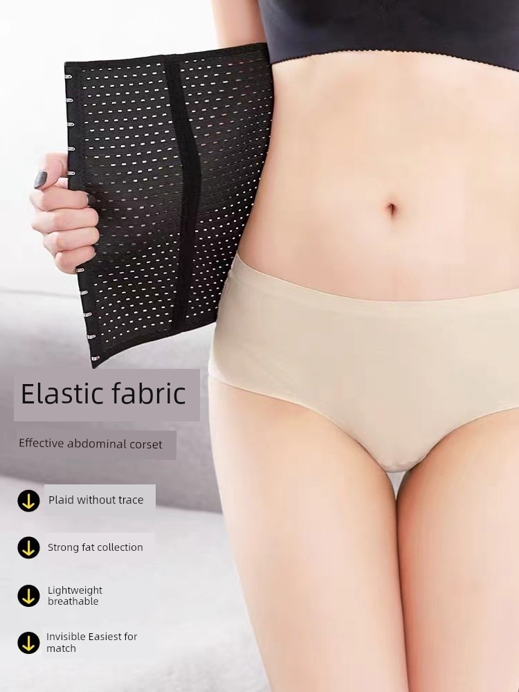 Shaping Thin Postpartum Small Belly Strong Appliance Waist Girdle -Black + skin color [2 pieces]]