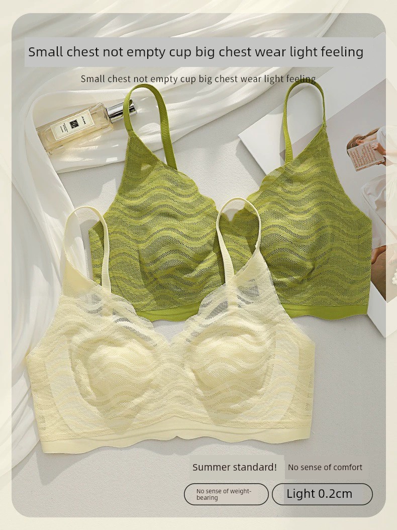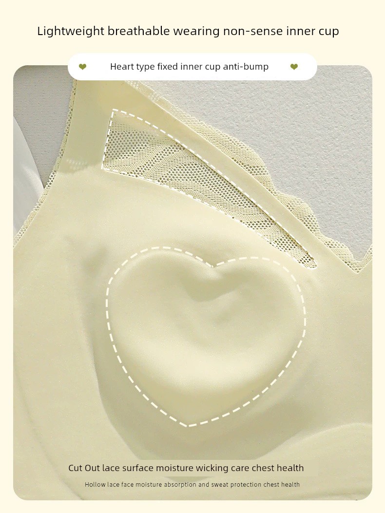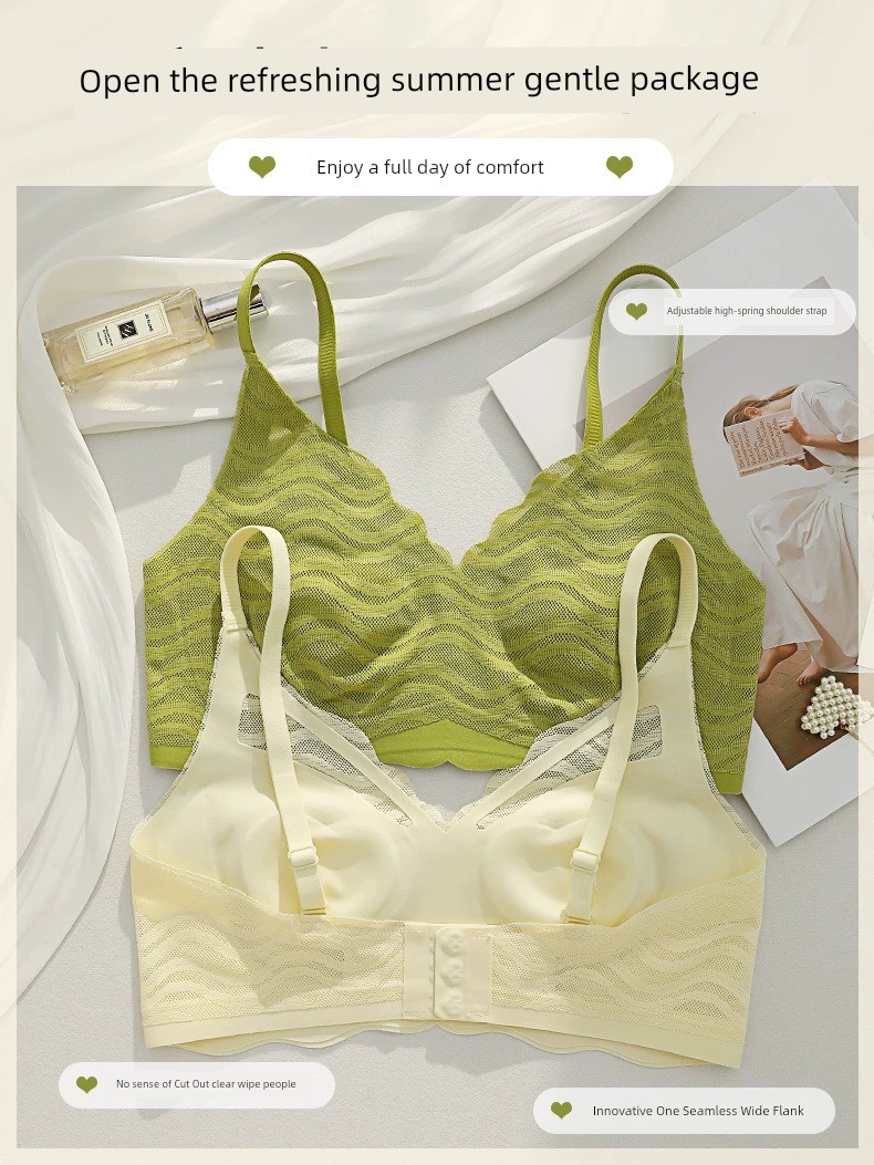 Summer Cool Underwear Women's Thin Big Breast Size Concealing Seamless Beautiful Back Ultra-Thin Breathable Heart Crystal Glasses Bra -Dark gray + Green (single piece)