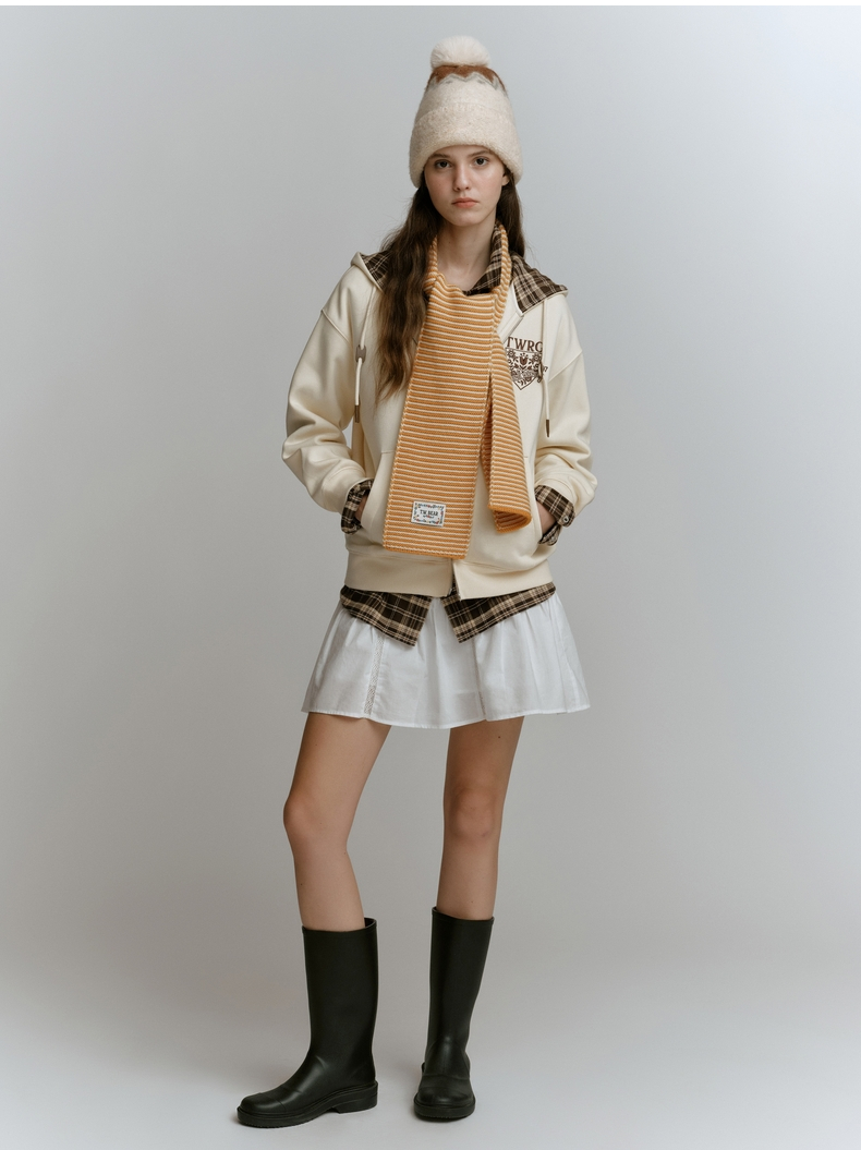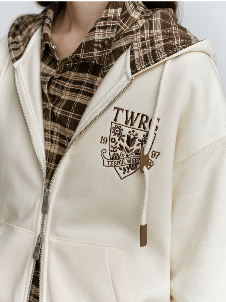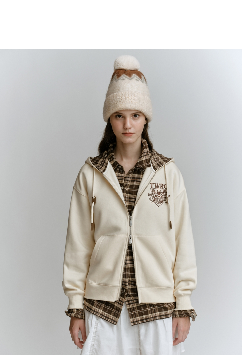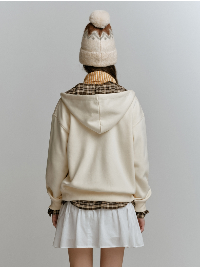 Teenieweenie Bear Women's Clothing Winter Minimalist Sports Style Pattern Double-Headed Zipper Mid Length Long Length Sweater Cardigan -Milky White