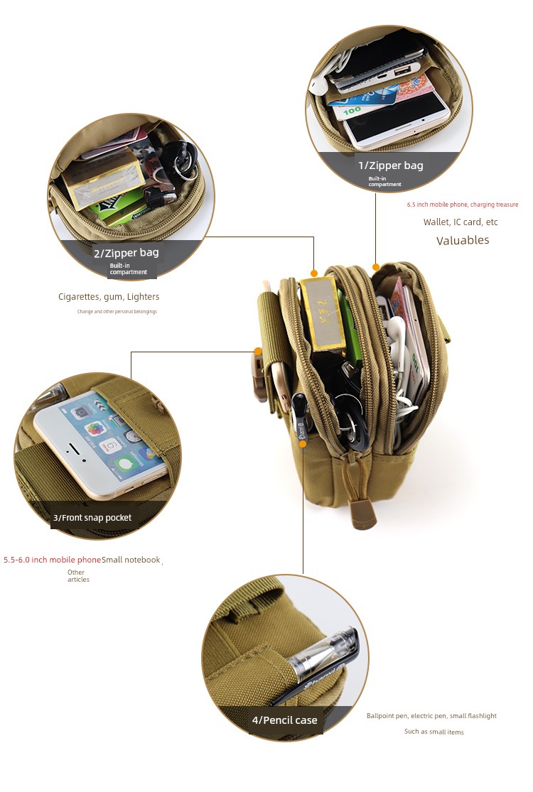 Waist Bag Men Belt Multifunctional Waterproof Combat Abrasion Resistant Mobile Phone Coin