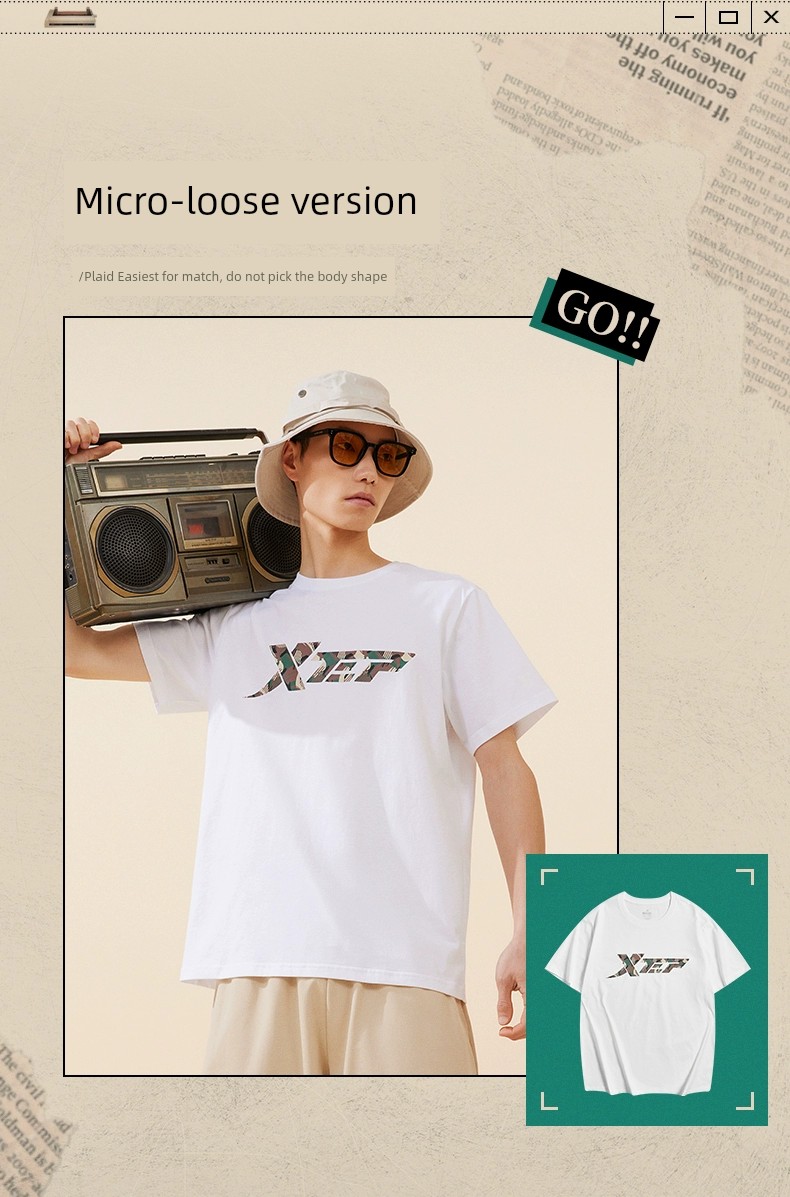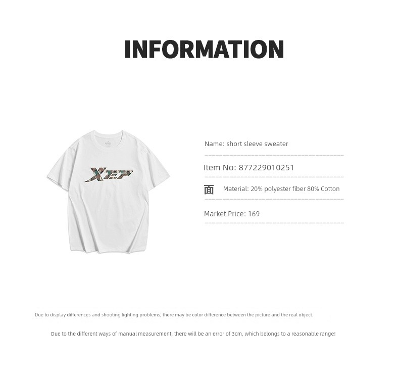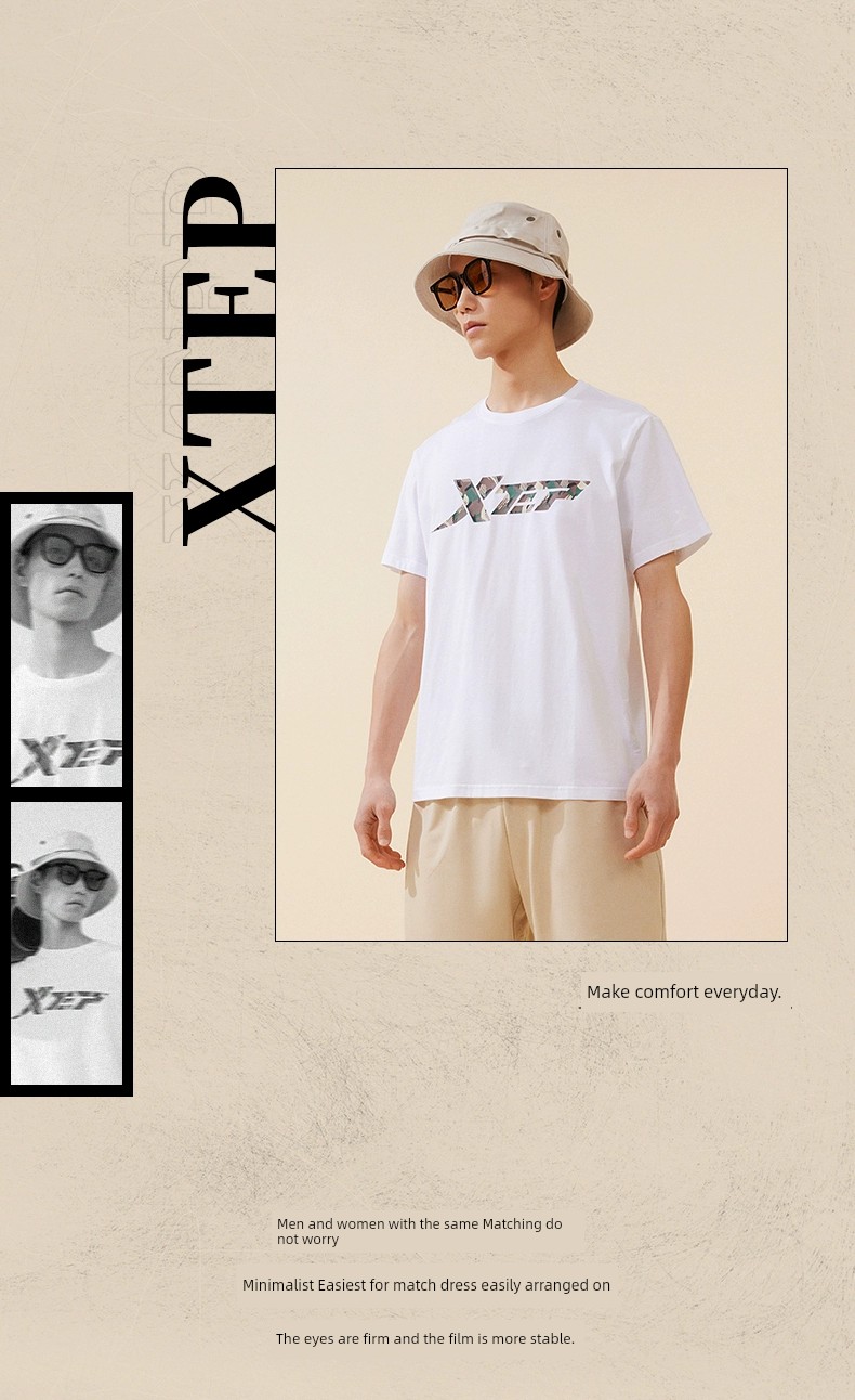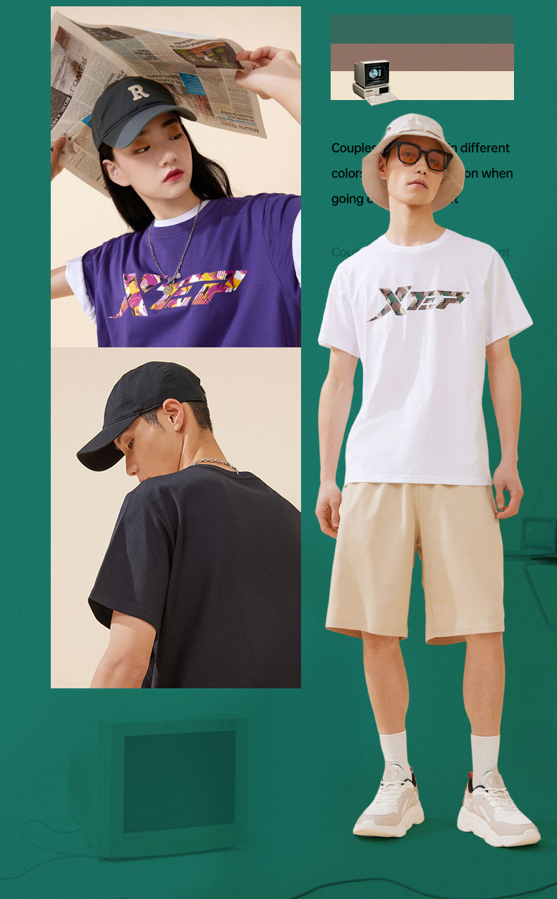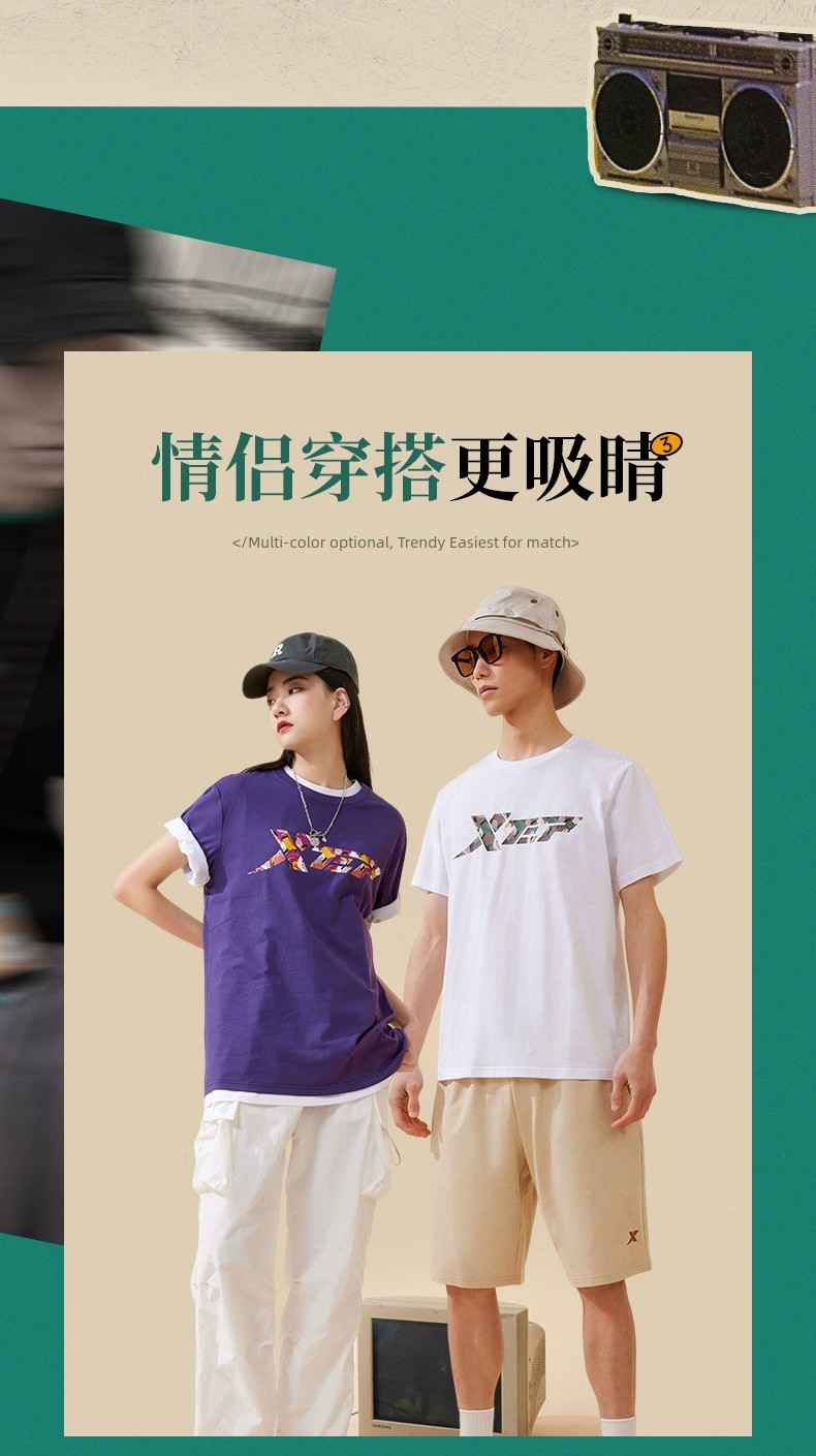 Xtep Men Women Couple Loose T Shirt Short Sleeves