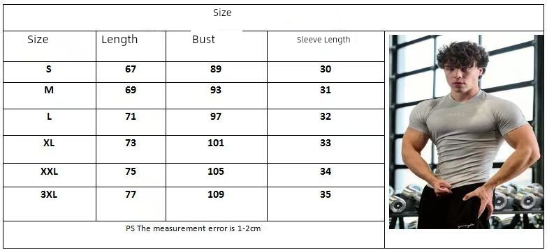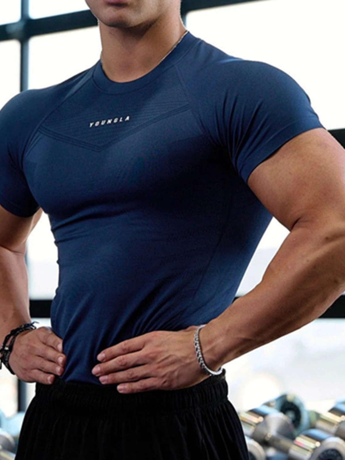 Youngla Workout Clothes Sports T-Shirt Men's Short Sleeve American Fashion Brand Muscle Bodysuit High Elastic Training Clothes Quick-Drying -Dark Blue