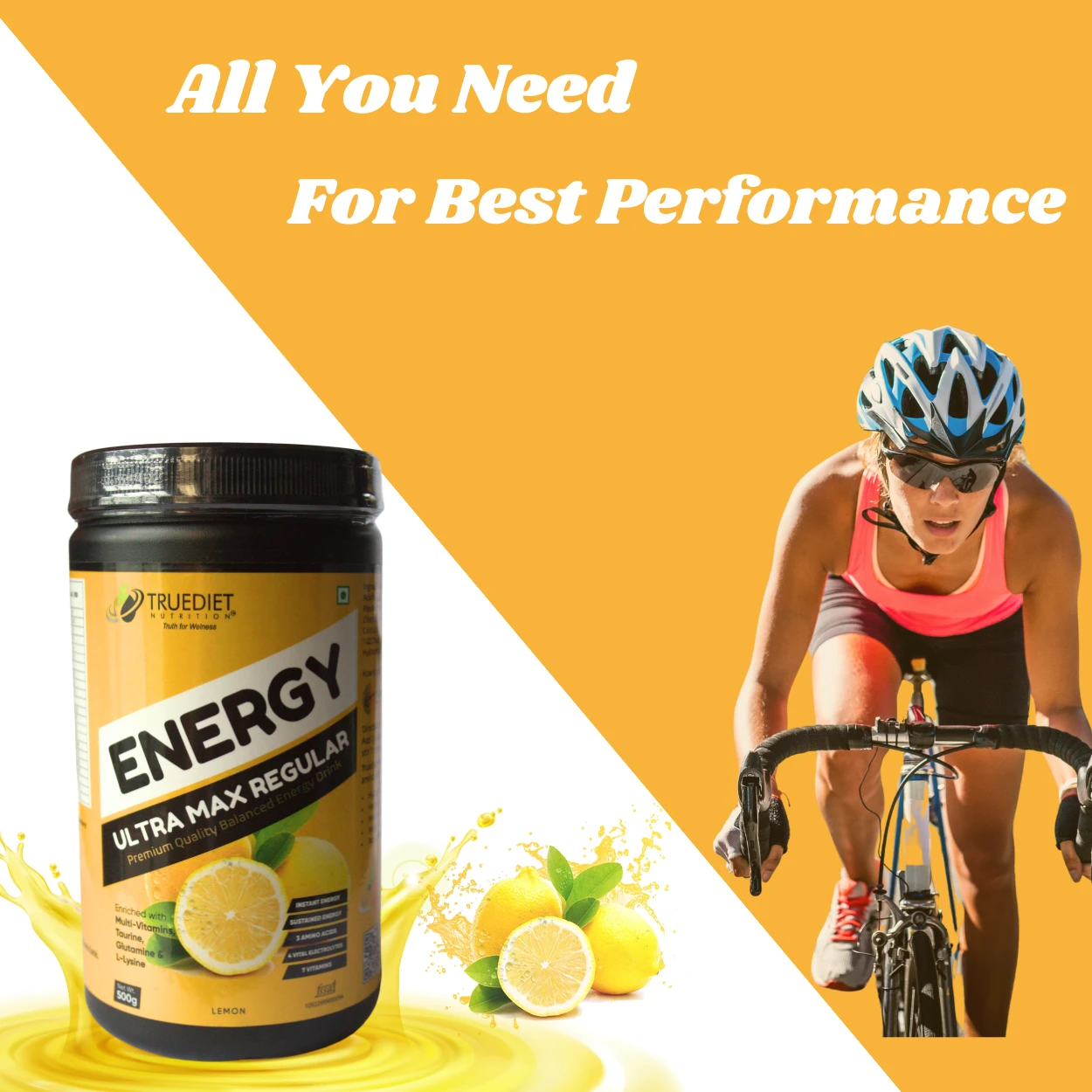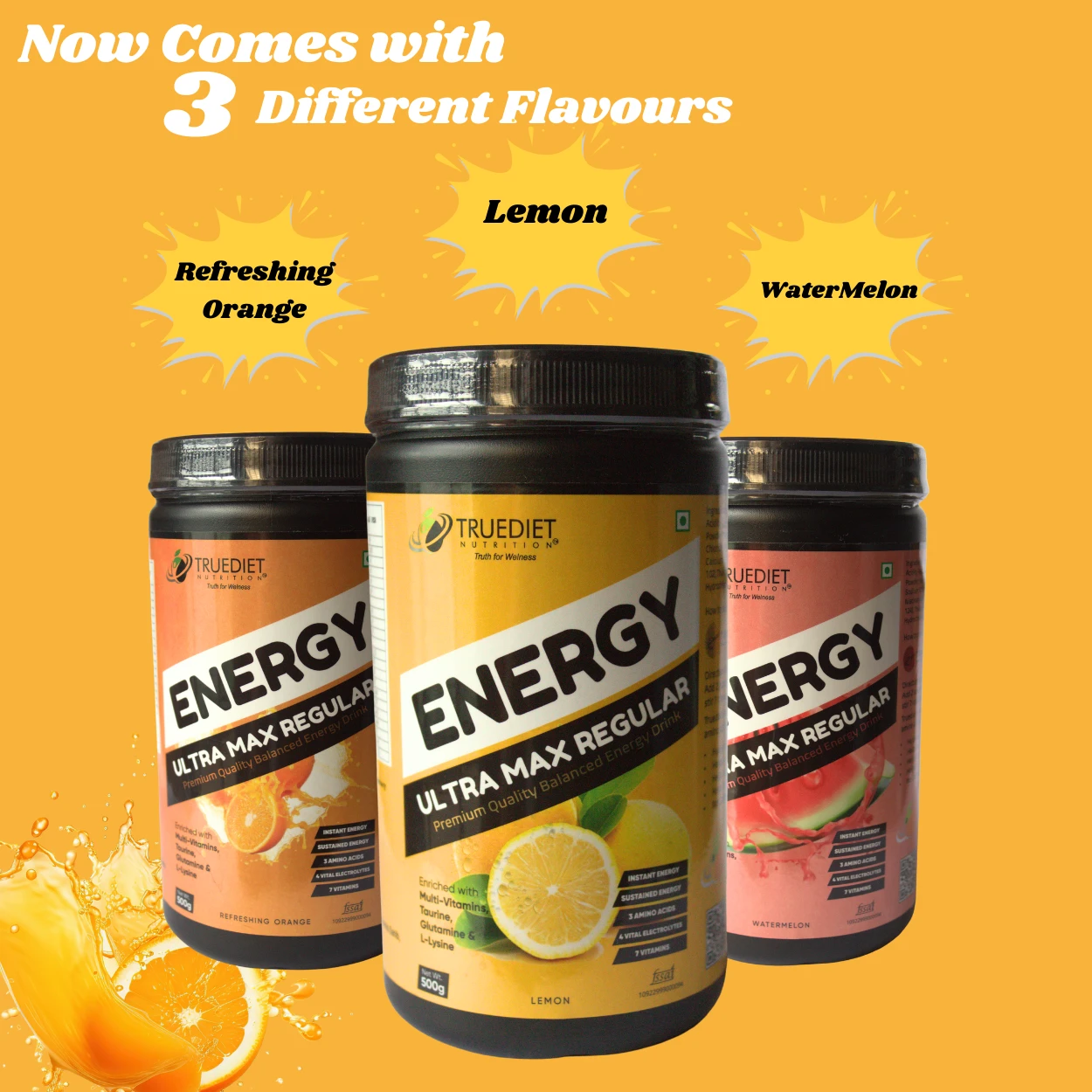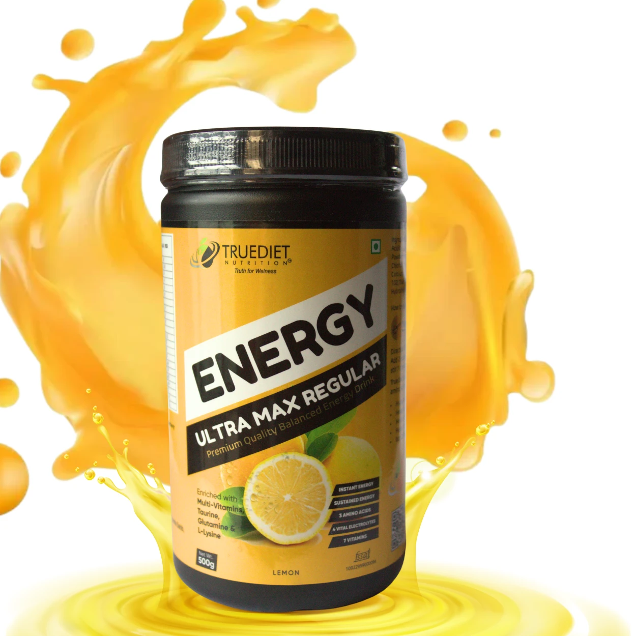 TRUEDIET Energy Ultra Max Regular Premium Quality Balanced Energy Drink 500g Lemon Flavored