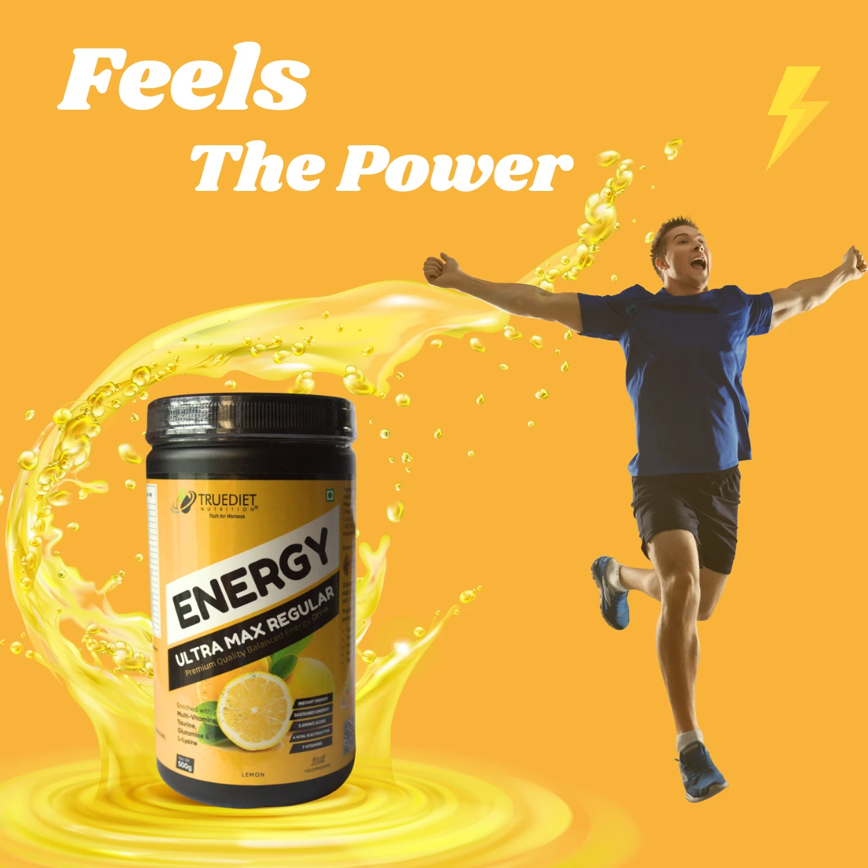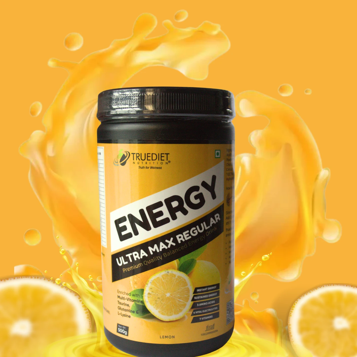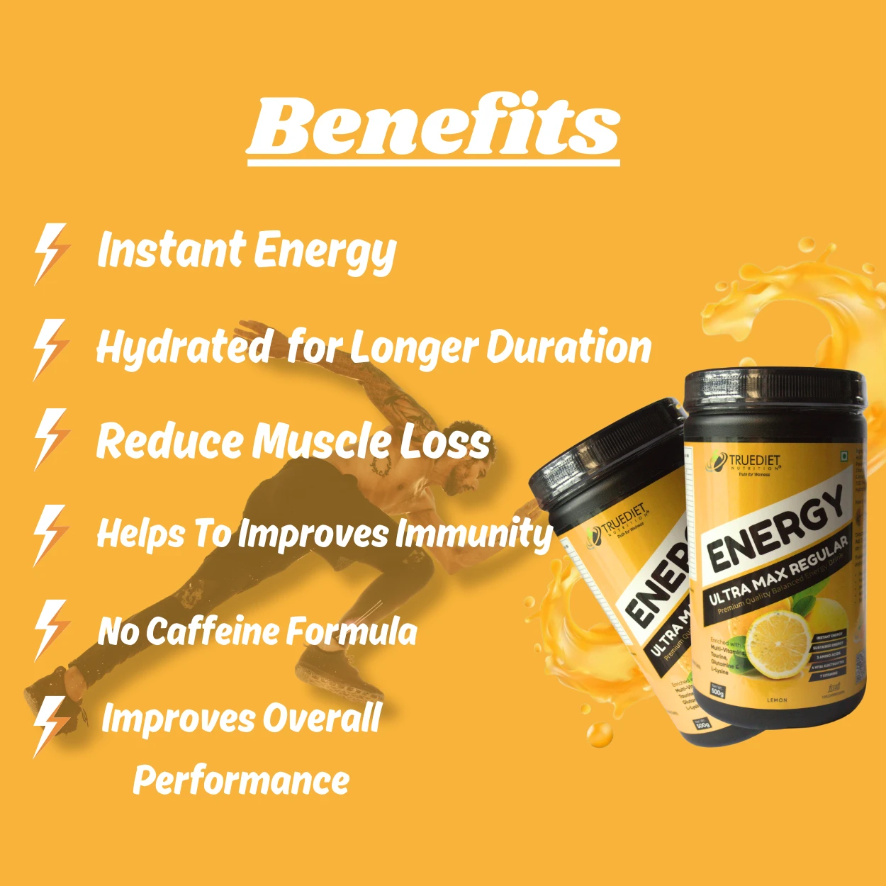 TRUEDIET Energy Ultra Max Regular Premium Quality Balanced Energy Drink 500g Lemon Flavored