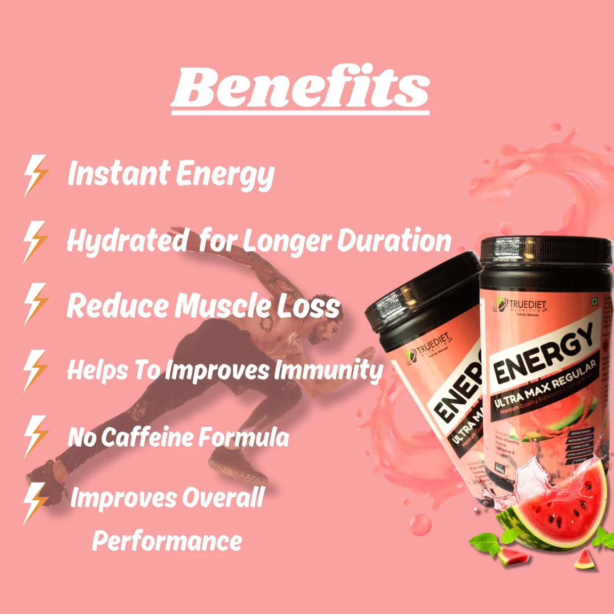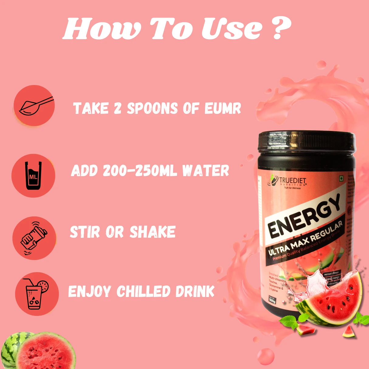 TRUEDIET Energy Ultra Max Regular Premium Quality Balanced Energy Drink 500g Water Melon Flavored