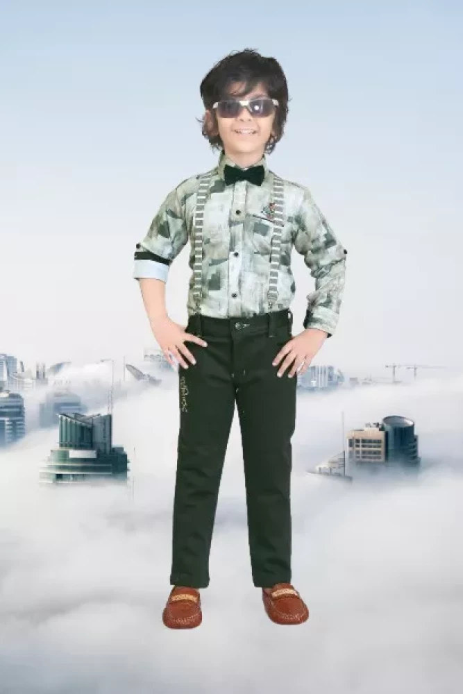 The set comprises a smart pink shirt and matching pants, both designed to keep your little one looking dapper and feeling comfortable throughout the day. The soft and breathable cotton fabric ensures a gentle feel against his skin, while the Lycra blend provides flexibility and ease of movement for active play.