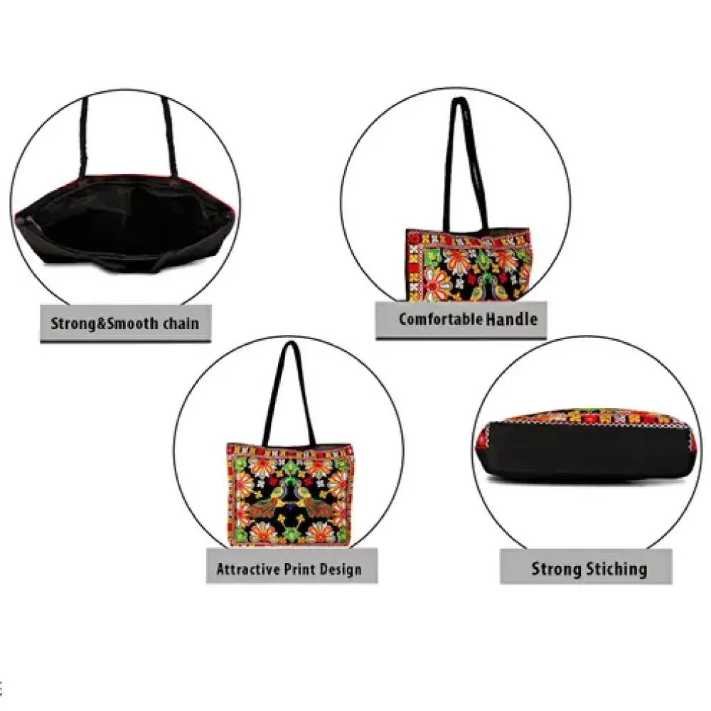 • High-Quality Cotton Fabric: Made from premium cotton, this handbag is not only stylish but also durable and comfortable to carry.