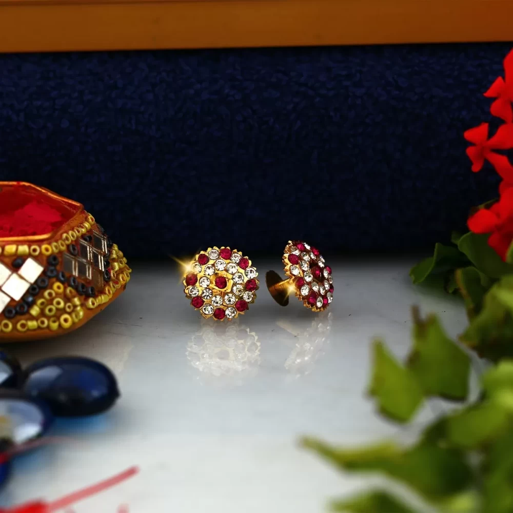 American Diamond studded Alloy Gold Plated Red Stone Earring