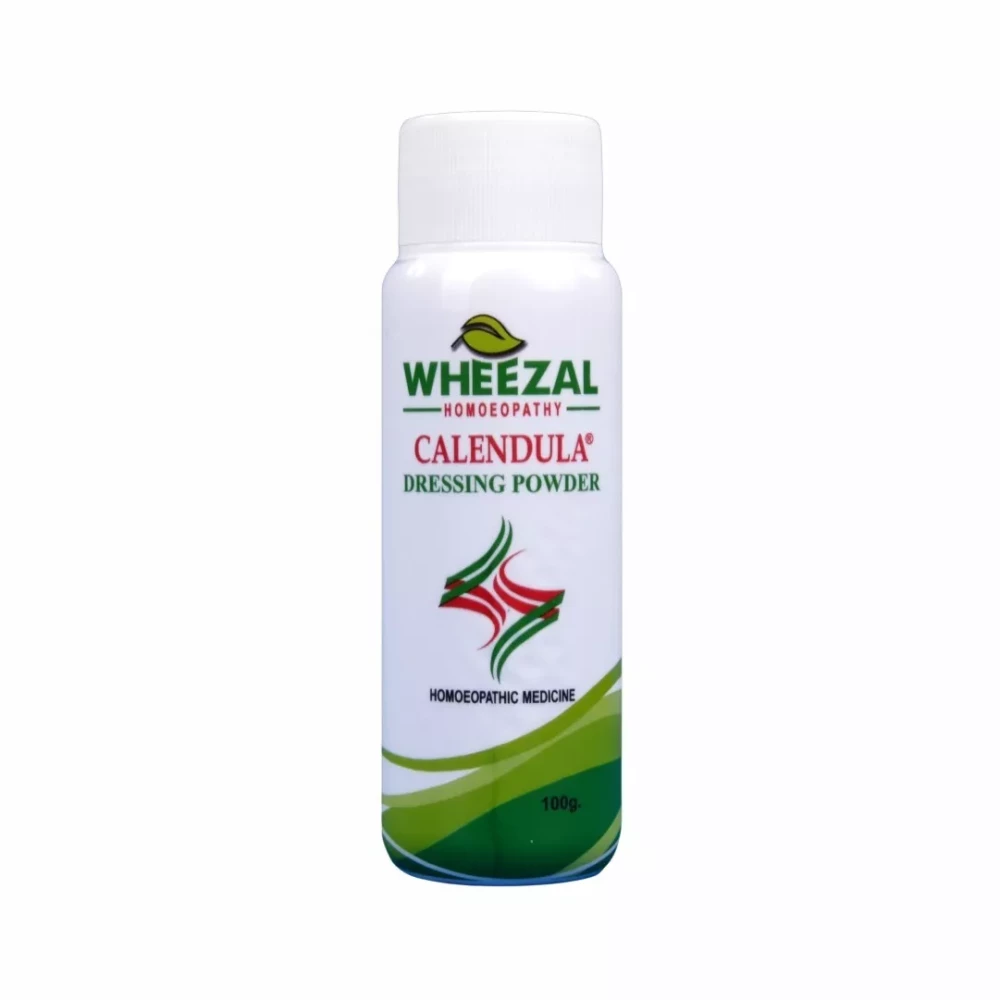 Wheezal Calendula Dressing Powder acts as antiseptic and disinfectant. It has healing properties and is useful for open wounds, ulcers,eczema, itching and bed sores.
