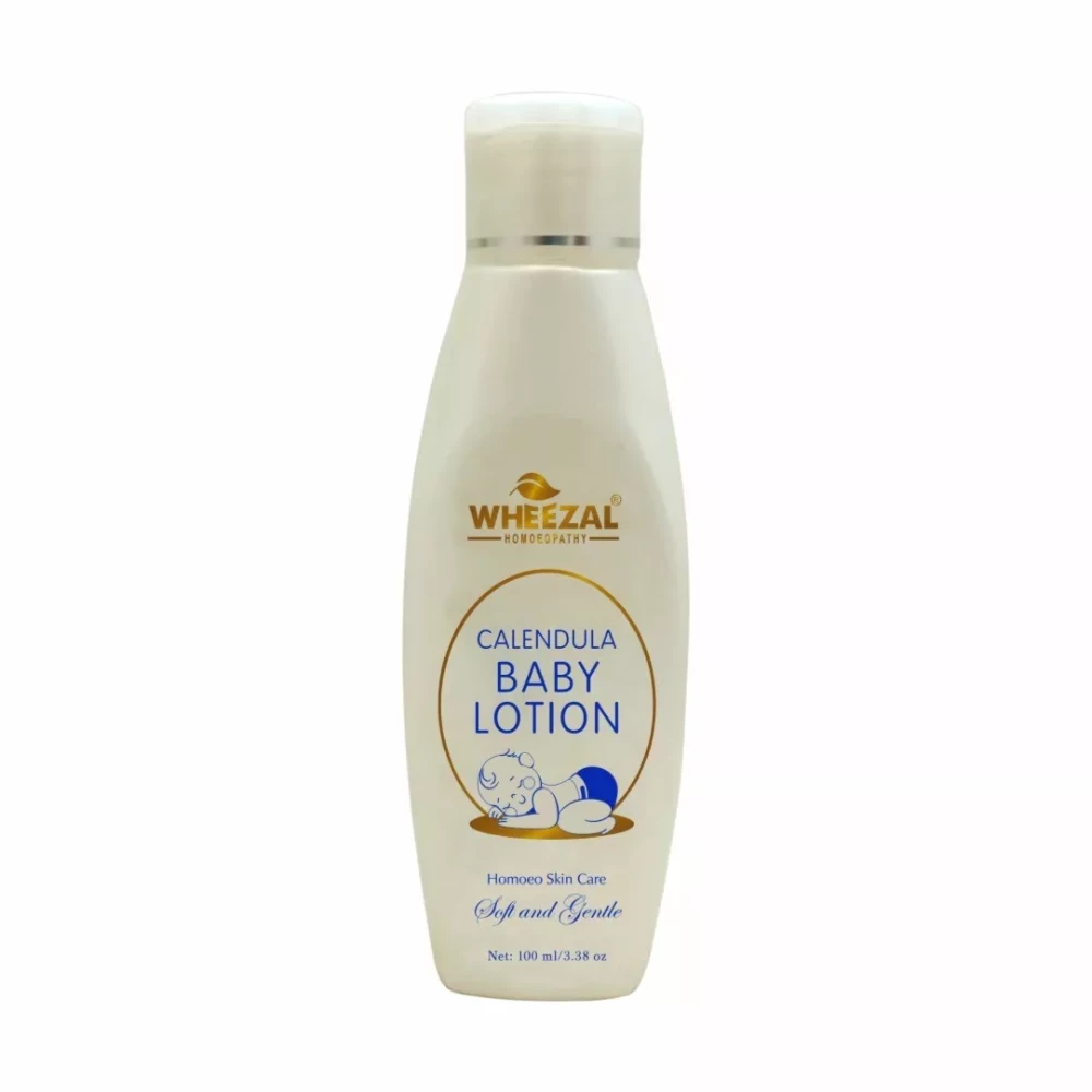 Wheezal's Calendula Baby Lotion is a gentle lotion specially formulated to restore the skin's natural beauty. Wheezal Baby Lotion leaves the Baby's Skin Soft & Supple. Our Baby Lotion is enriched with the goodness of Calendula and Aloe vera that restore the skin's moisture. Prunus Dulcis Oil helps improve skin lustre. Coco Nucifera & Santanum Album Oil that helps to soothe the baby's skin.