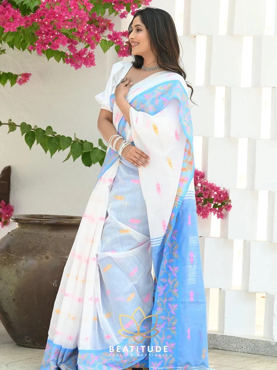 Tag: cotton saree blouse silk women wear ethnic wear women clothes clothing blue white cotton silk