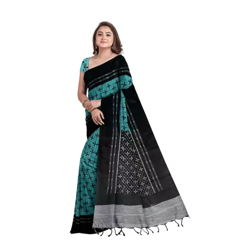 The Exclusive Printed Saree comes with a Running Blouse made from Khadi Cotton, featuring a Solid pattern. This thoughtful combination ensures a cohesive and stylish look, emphasizing the traditional charm of the ensemble.
