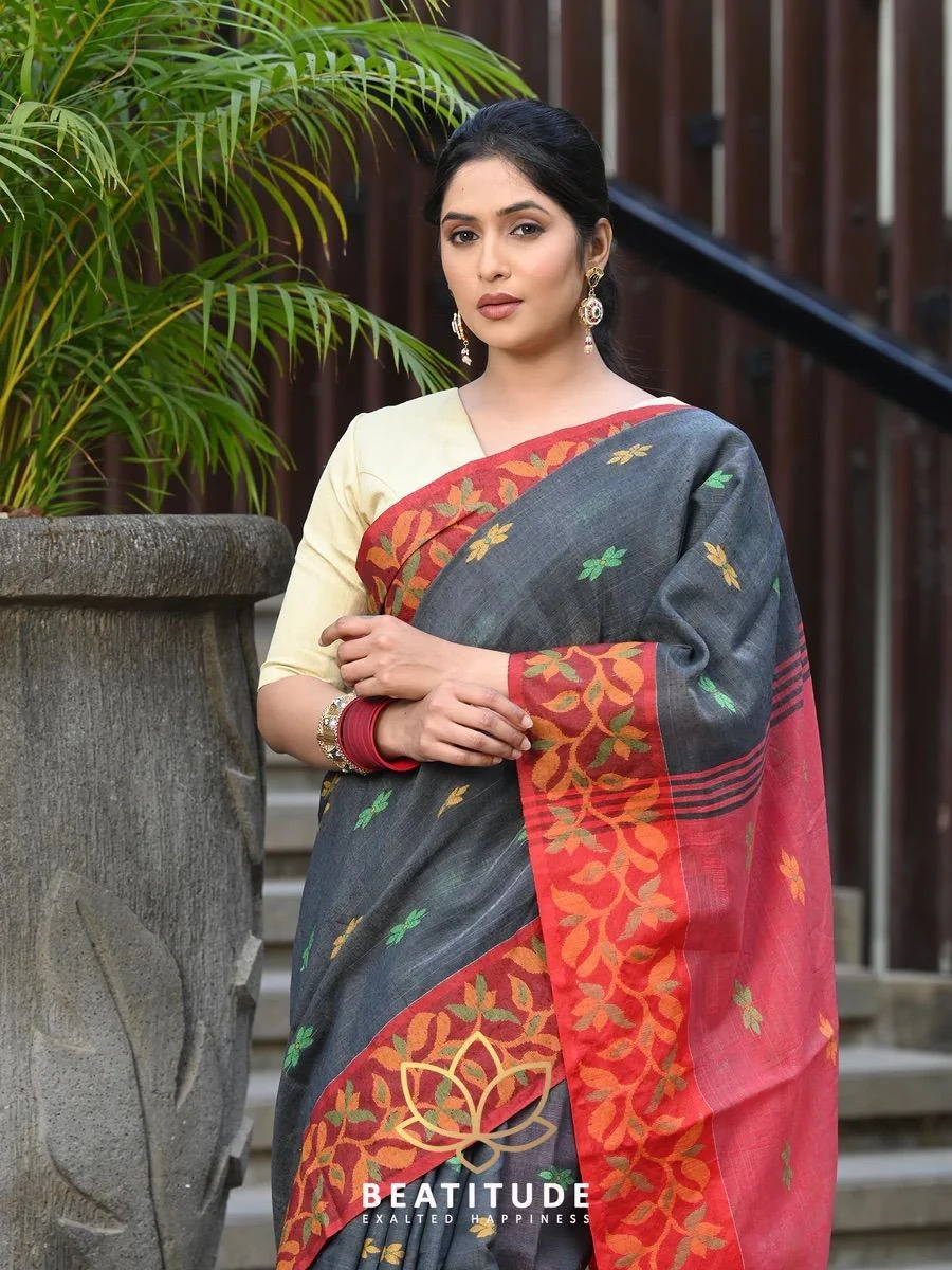 Crafted from premium quality cotton silk fabric, this saree boasts a luxurious texture and a soft, smooth drape that enhances your natural grace. The subtle yet striking combination of grey hues creates a timeless appeal, making it a versatile addition to your ethnic wardrobe.