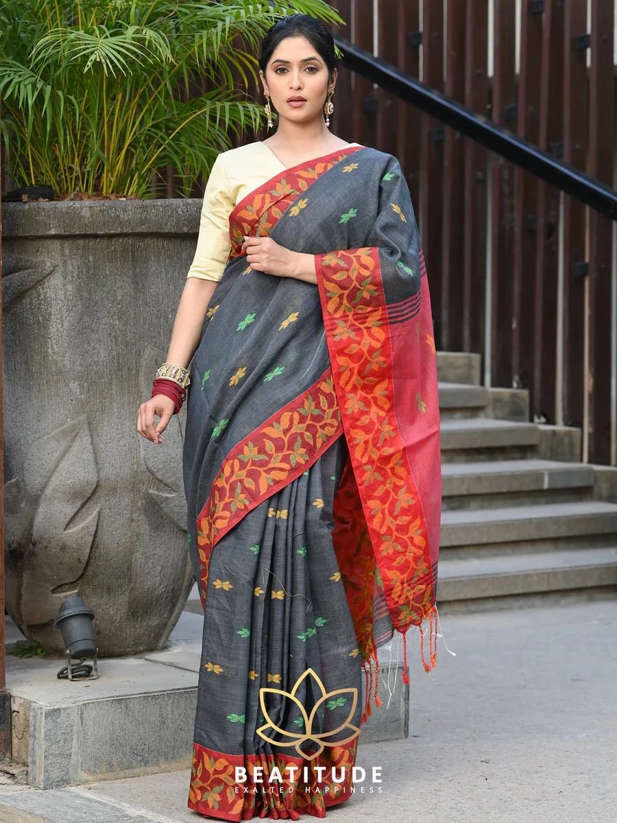 Adorned with intricate patterns and designs, including floral motifs and geometric prints, this saree exudes a sense of understated elegance. The meticulous craftsmanship and attention to detail ensure that you make a statement wherever you go.