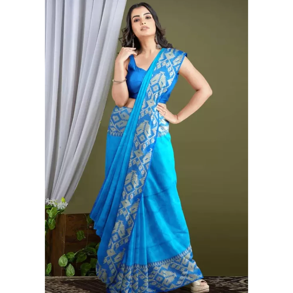 Fancy Jamdani Paar Handloom Saree Sky