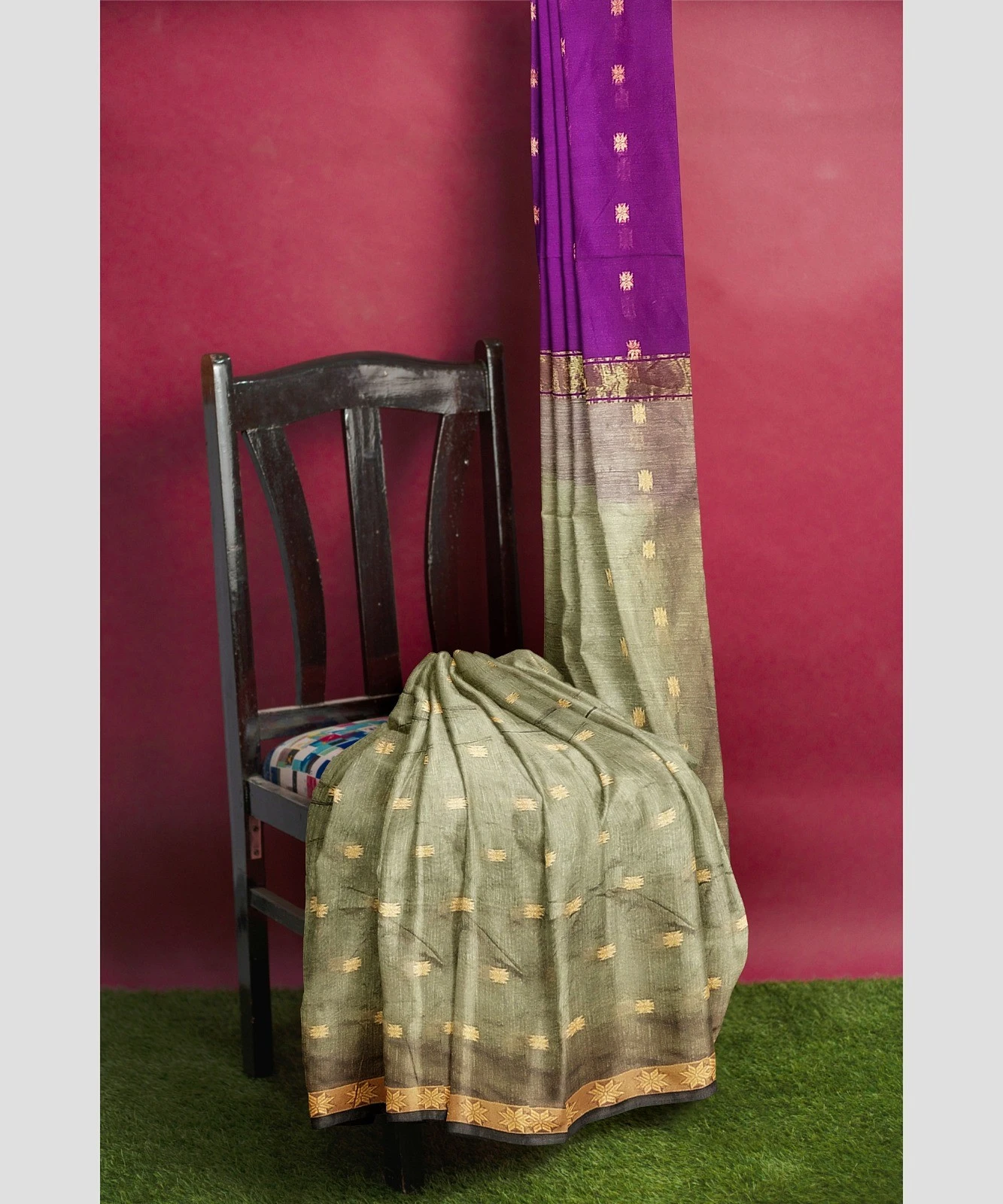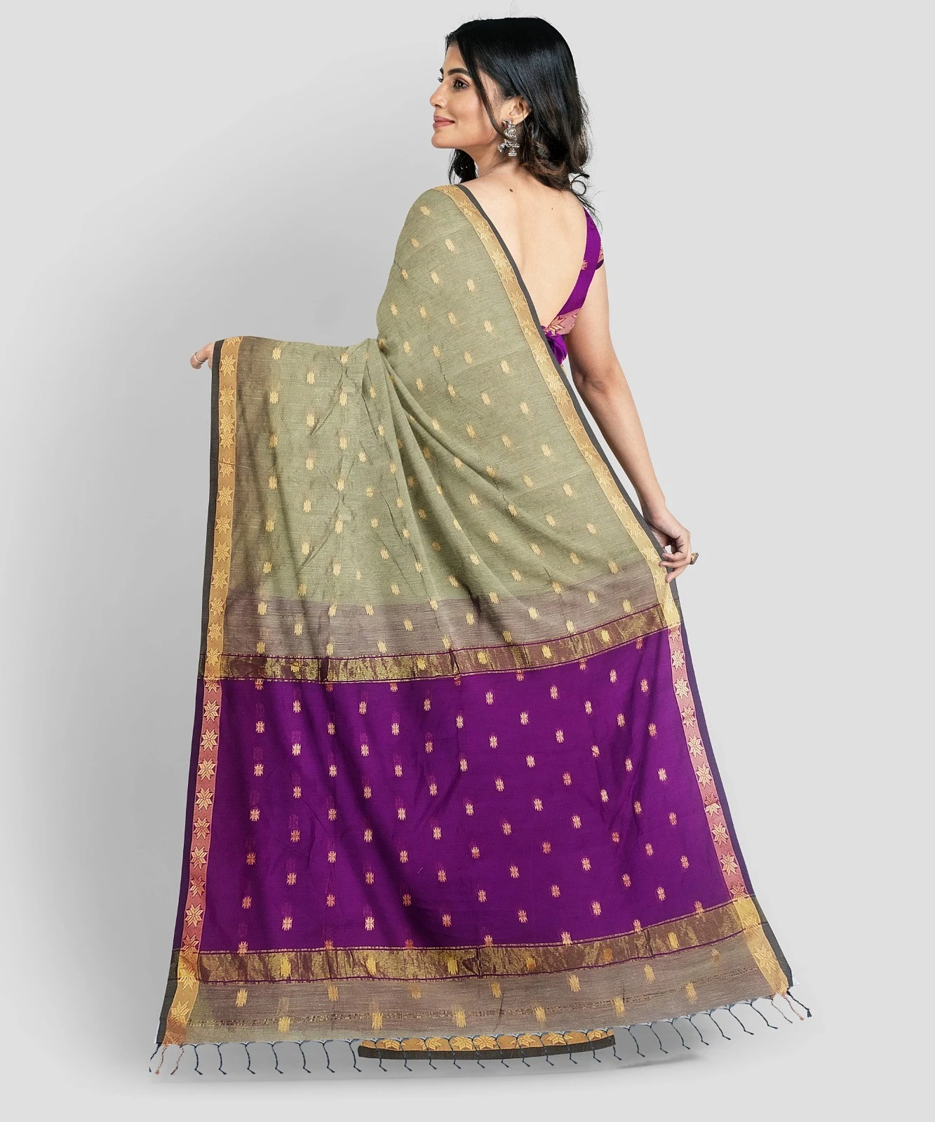 Introducing our exquisite Maheswari Cotton Silk Beige Purple Saree, a masterpiece of elegance and grace that will enchant every onlooker with its timeless beauty.