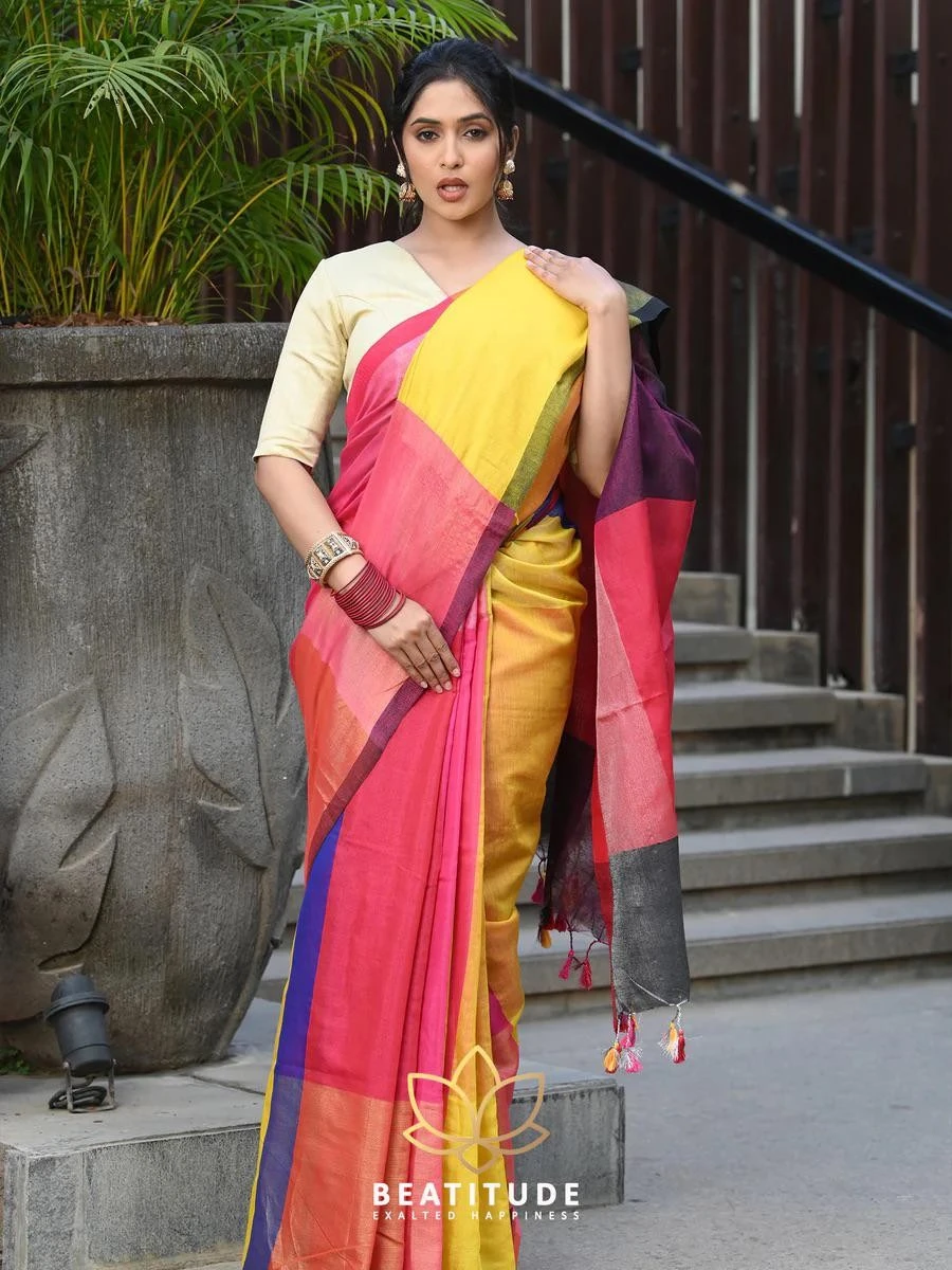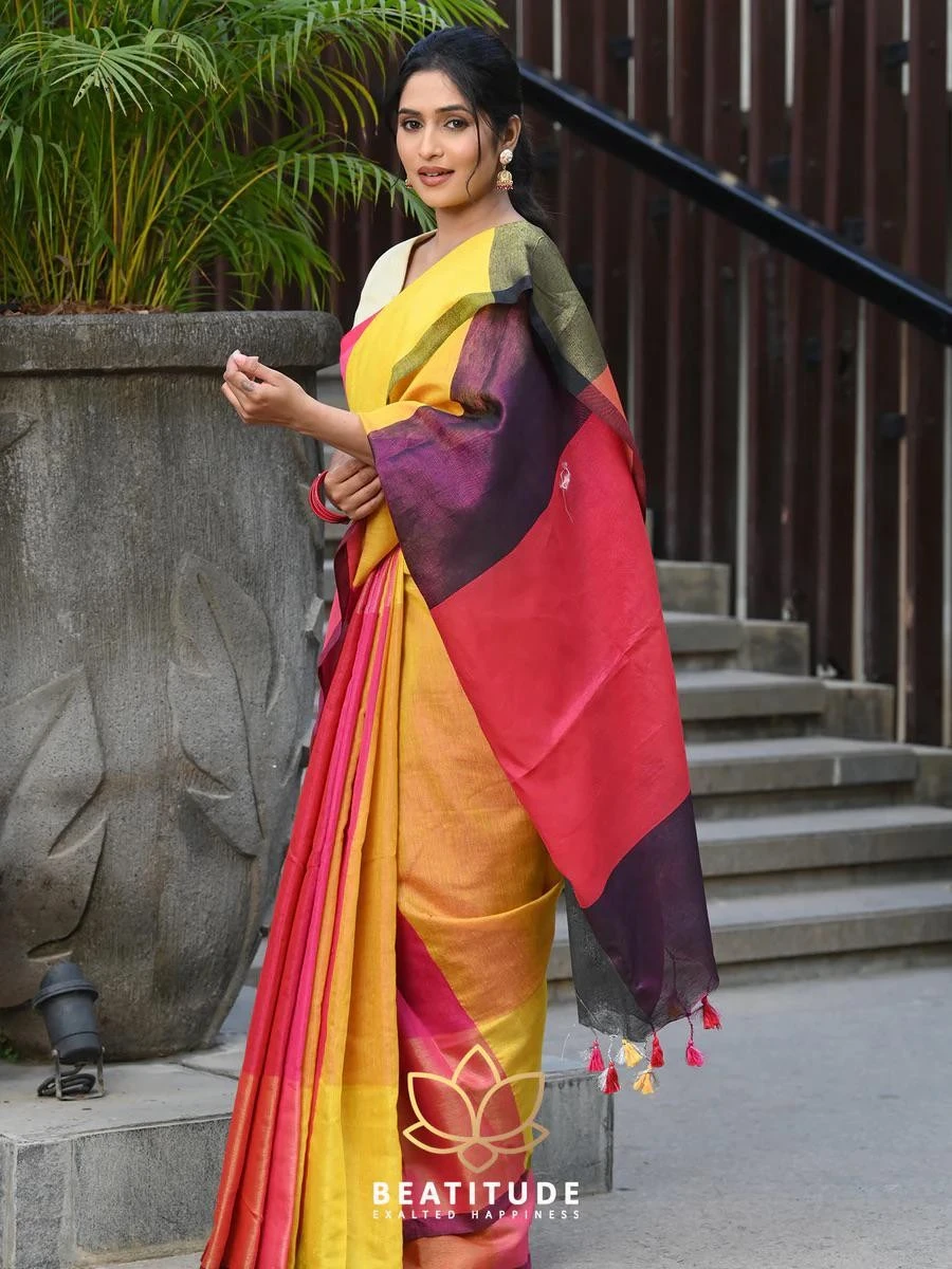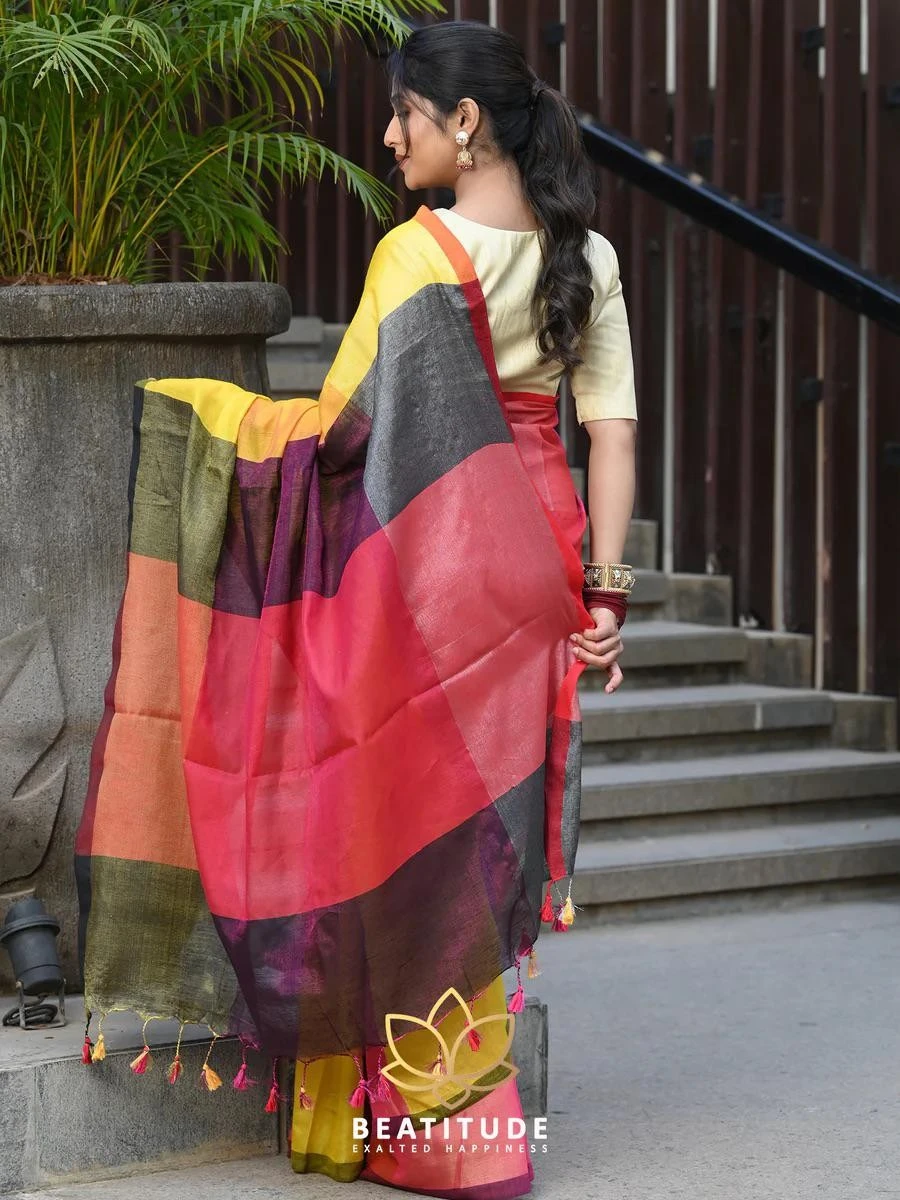 Introducing our Maheswari Cotton Silk Tissue Multicolor Saree, a beautiful blend of tradition and contemporary style.